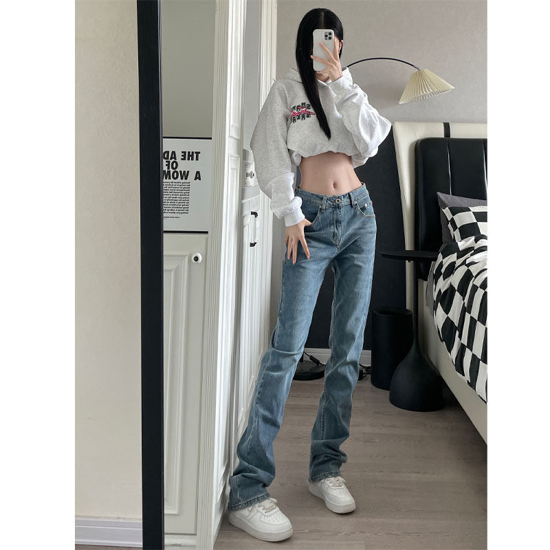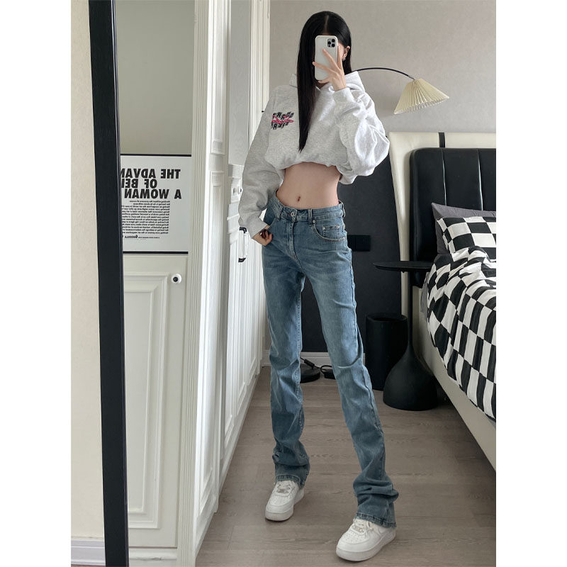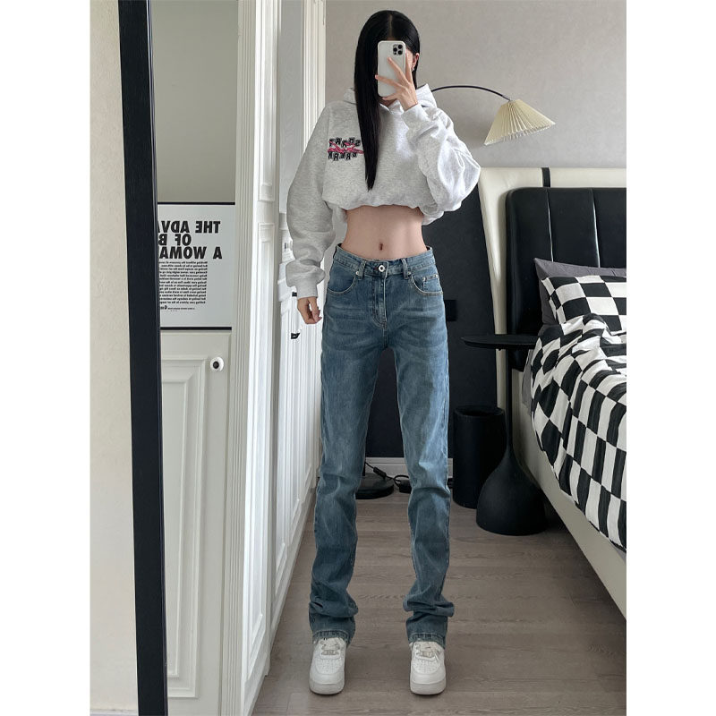 美式高街春秋牛仔裤男修身水洗弹力窄版直筒裤男女情侣通勤长裤子