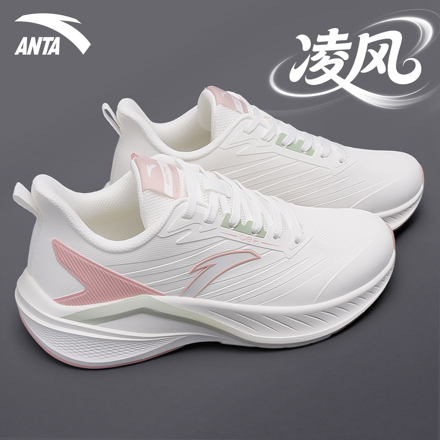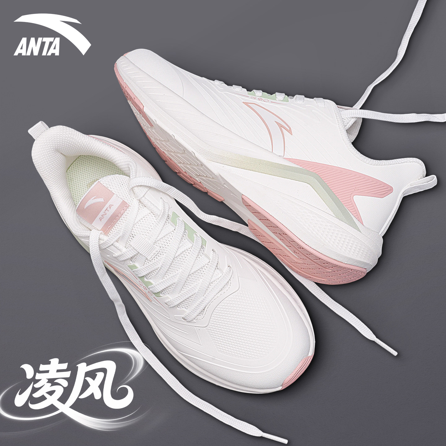安踏凌风跑鞋女运动鞋防泼水皮面跑步鞋学生体测轻便回弹慢跑鞋子
