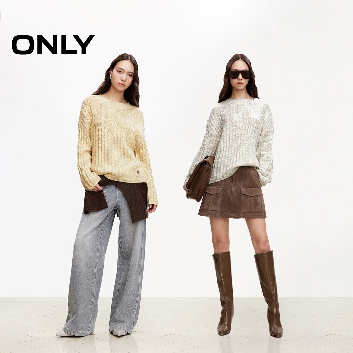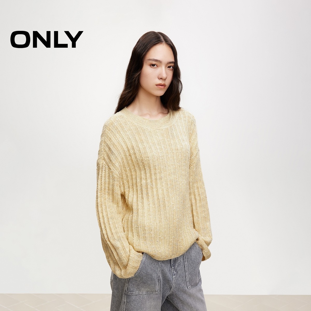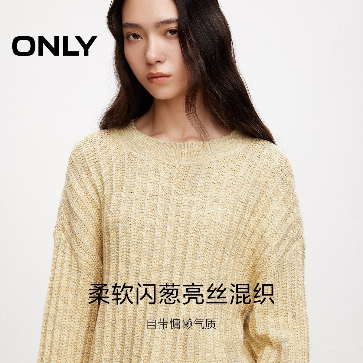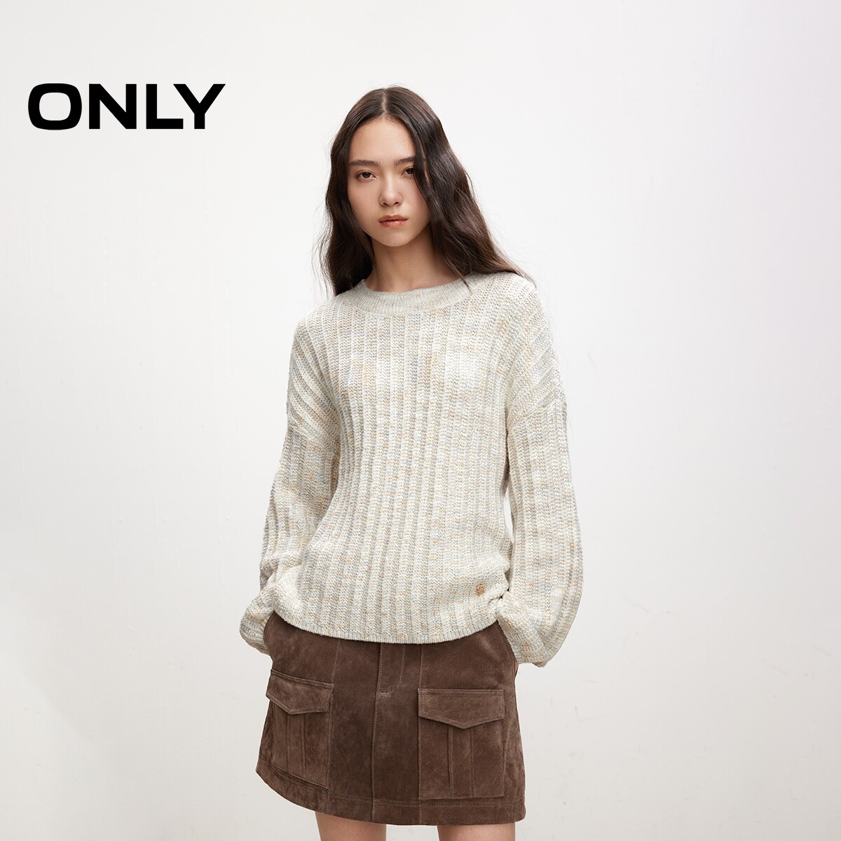 ONLY秋季慵懒简约宽松落肩圆领毛衣针织衫女|124413041