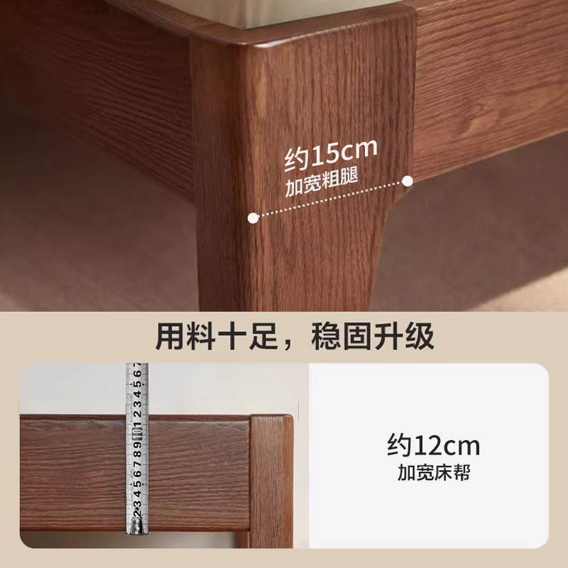 床实木床现代简约1.5米红橡木双人床1米8主卧新中式1.2小户型大床