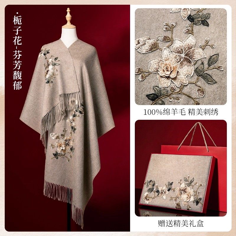 刺绣羊毛围巾女冬季保暖旗袍披肩高档送礼送妈妈婆婆长辈生日礼物