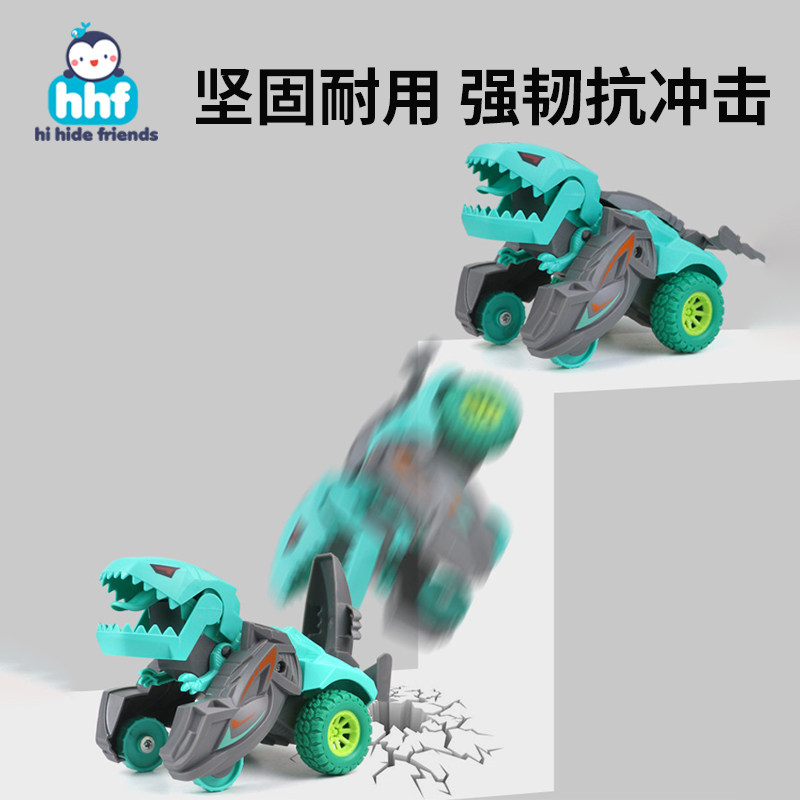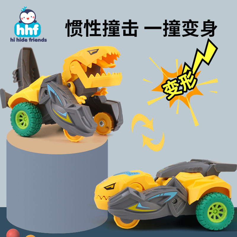 儿童玩具车碰撞击变形恐龙小汽车男孩子霸王龙惯性战车宝宝变身车