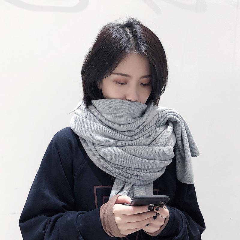 韩版纯色针织毛线围巾女秋冬季加厚保暖学生情侣围脖男百搭披肩潮