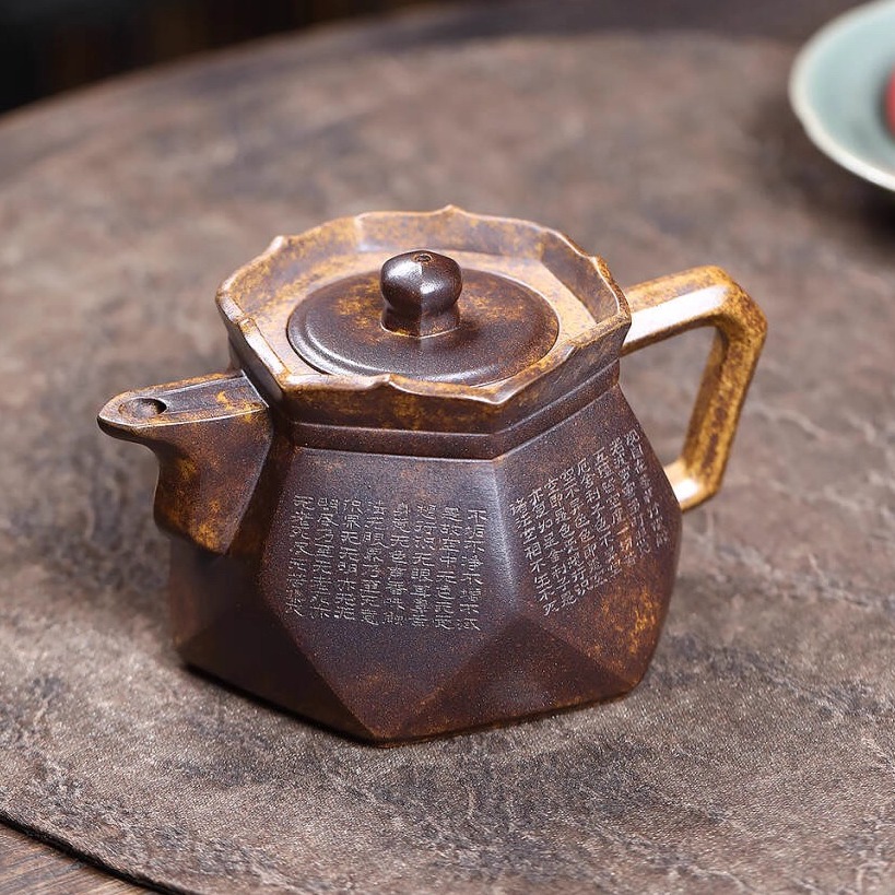 300毫升宜兴紫砂壶手工心经茶壶六方壶原矿龙骨金砂料钻石僧帽壶