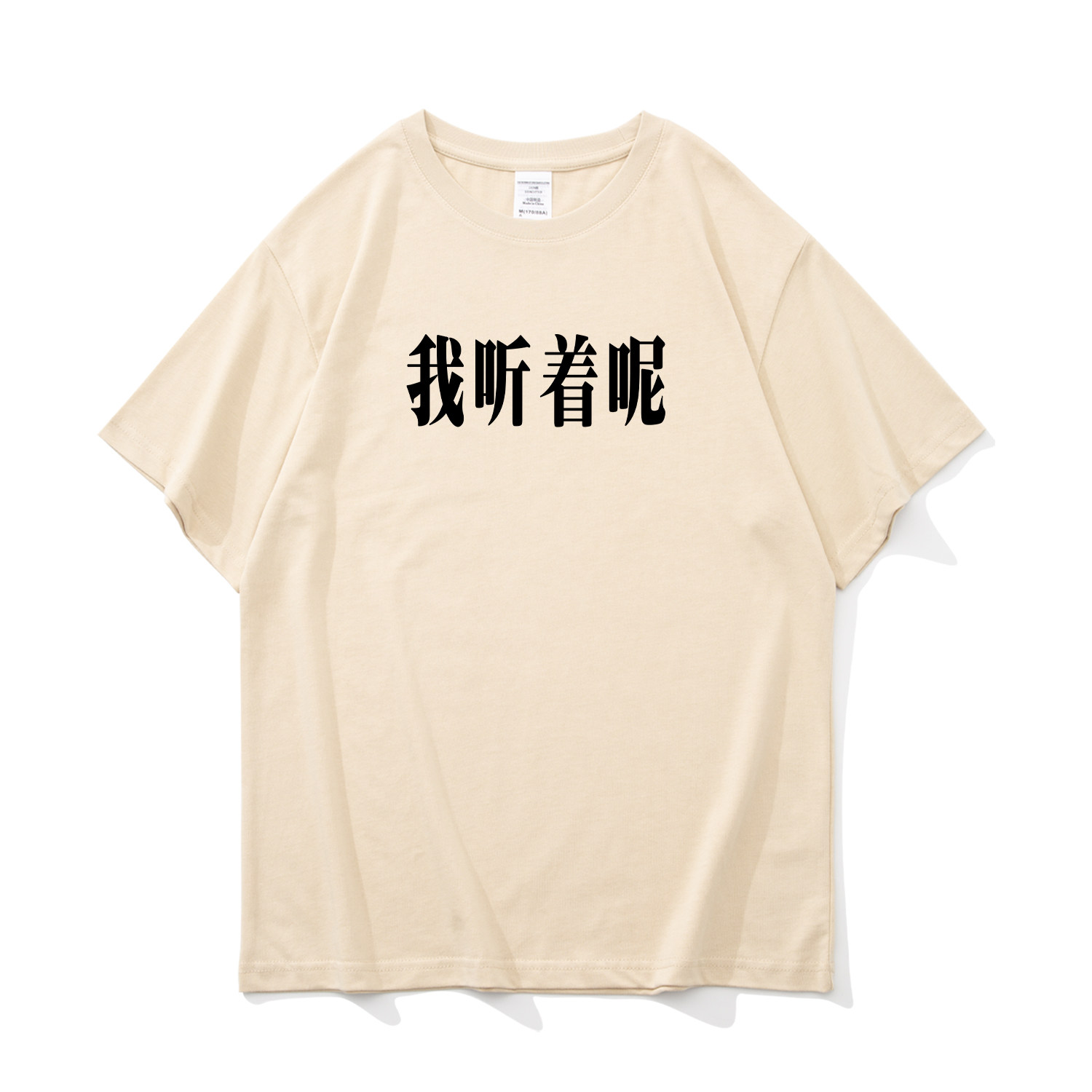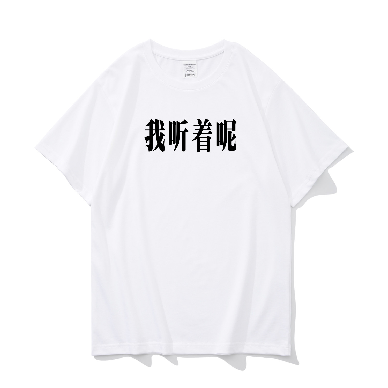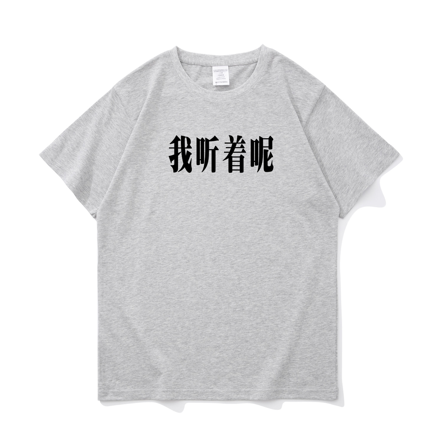 我听着呢 搞笑文字纯棉t恤短袖男夏季宽松休闲大码圆领打底衫体恤