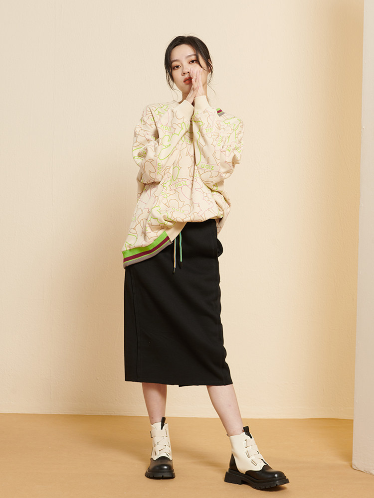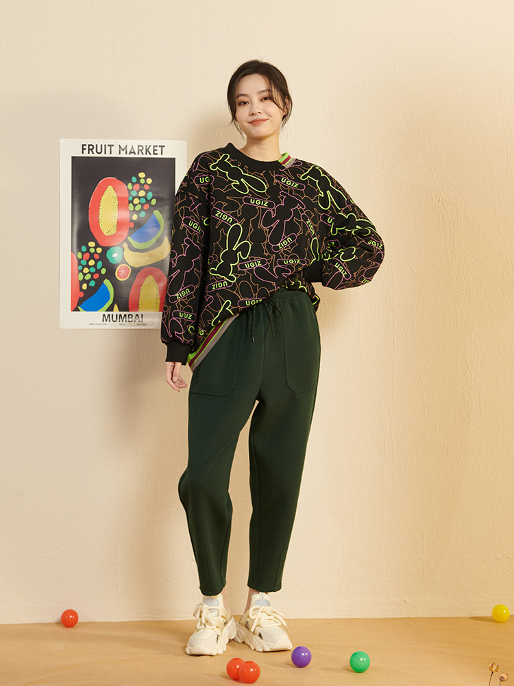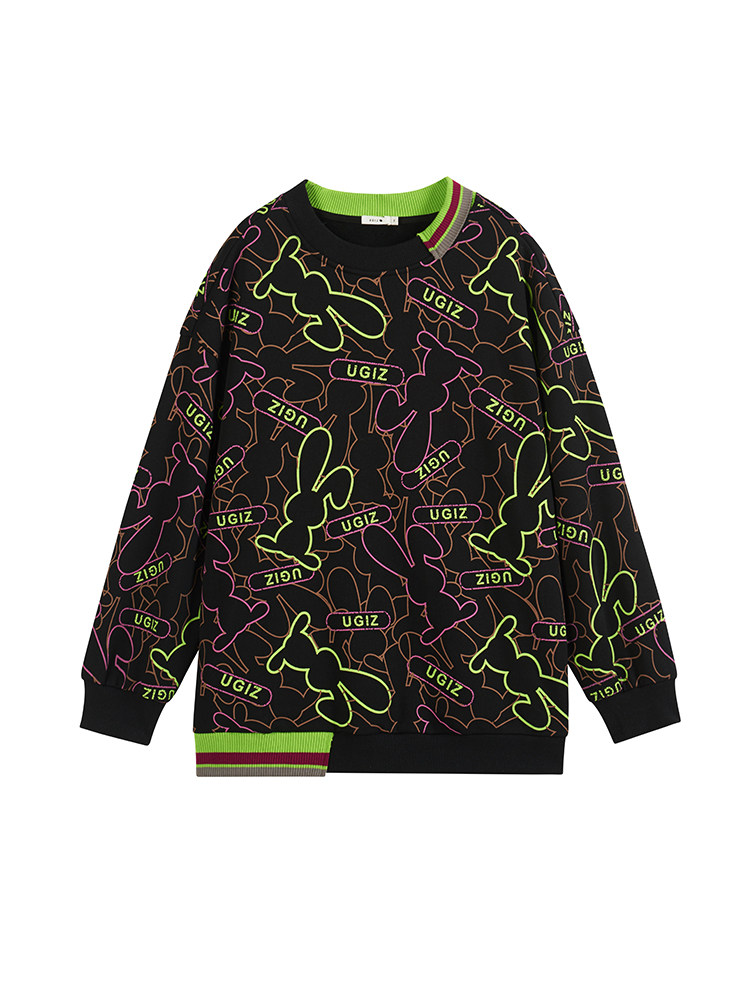 UGIZ商场同款2022冬季新品韩版女装休闲圆领印花卫衣女UDTF905