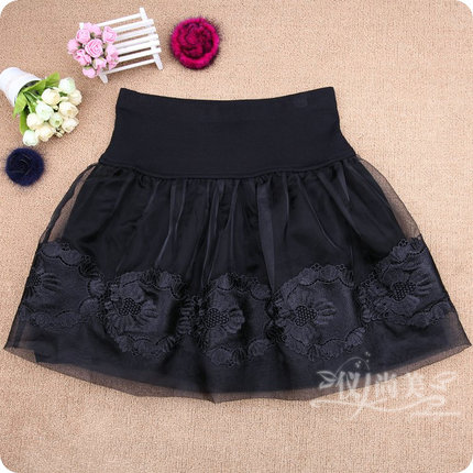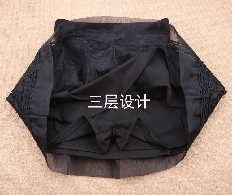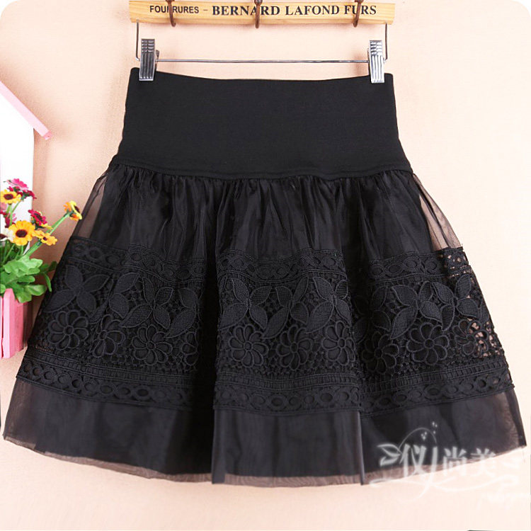 秋冬新款蕾丝短裙欧根纱半身裙女蓬蓬裙子大码打底高腰a字裙纱裙