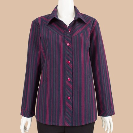 妈妈装新款条纹纯棉衬衫女中老年女装宽松加肥长袖上衣春秋薄外套