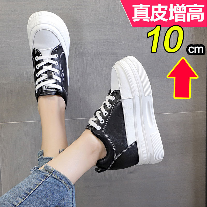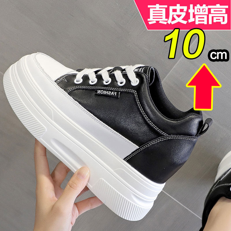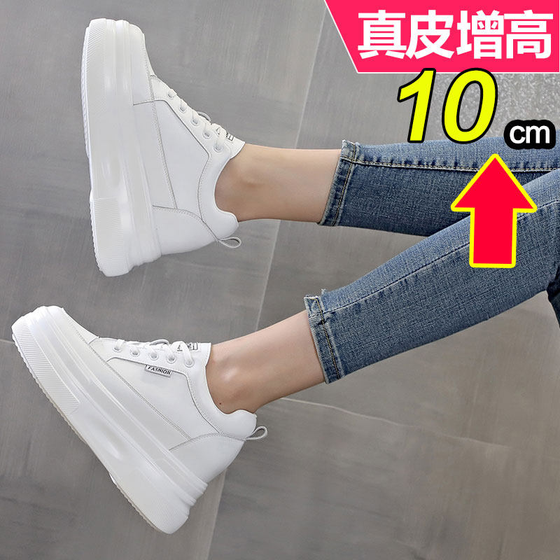 小个子内增高女鞋10cm公分真皮2025新款春秋季厚底松糕单鞋小白鞋