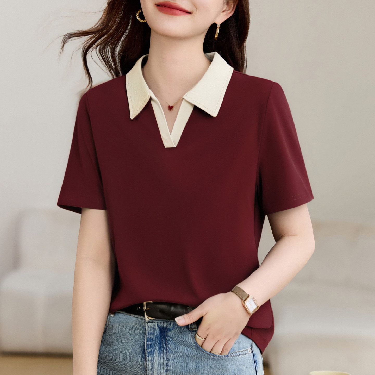 翻领短袖t恤女2025新款夏季爆款女装妈妈减龄紫色上衣半袖体恤衫