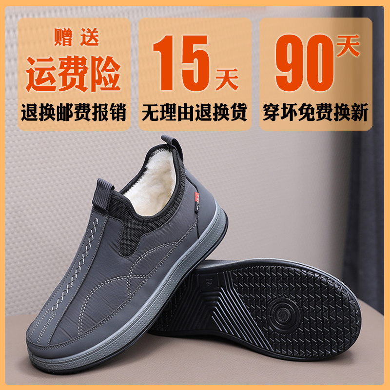 老北京布鞋男冬季加绒保暖鞋中老年舒适爸爸鞋一脚蹬防滑老人棉鞋