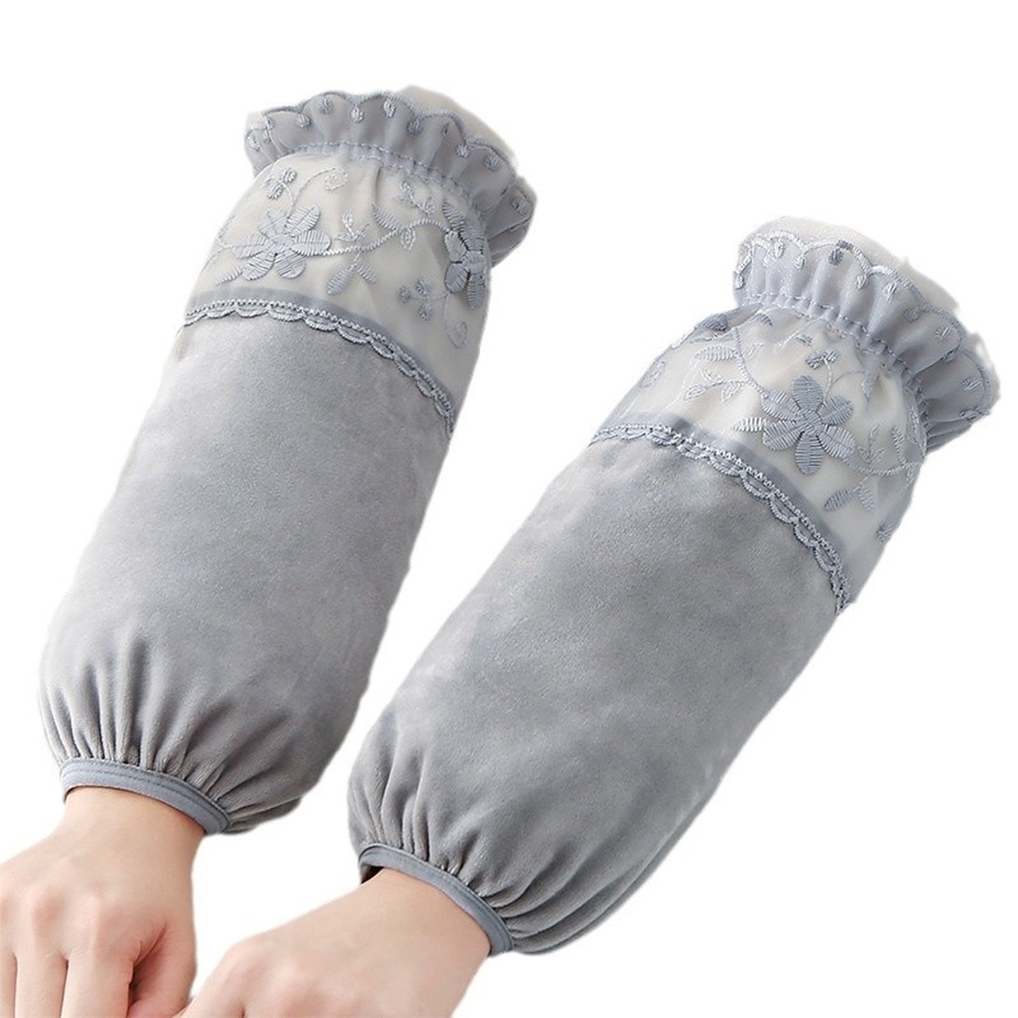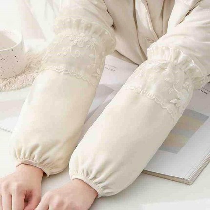加长袖套女士秋冬季长款蕾丝袖头上班专用棉衣防脏护袖羽绒服套袖
