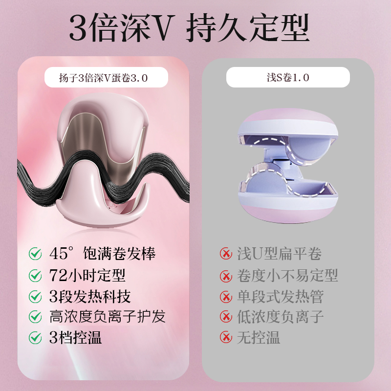 扬子深v蛋蛋卷头卷发棒36mm蓬松法式大卷水波纹羊毛卷电夹板神器