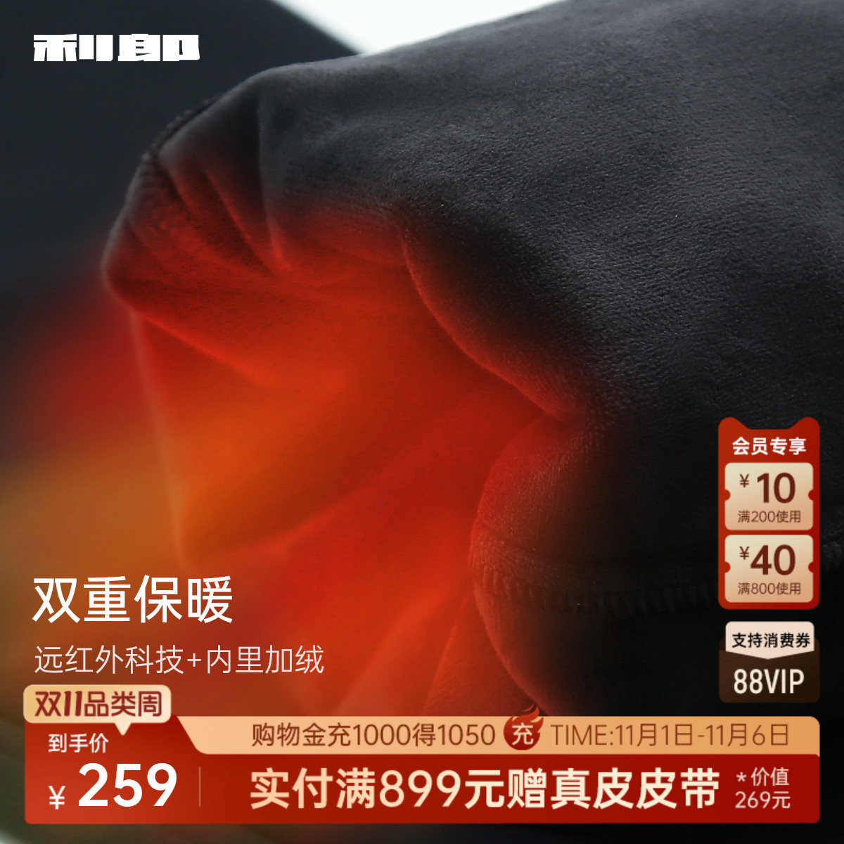 【加绒加厚】利郎官方 远红外四面弹休闲裤男士2025冬季保暖裤子
