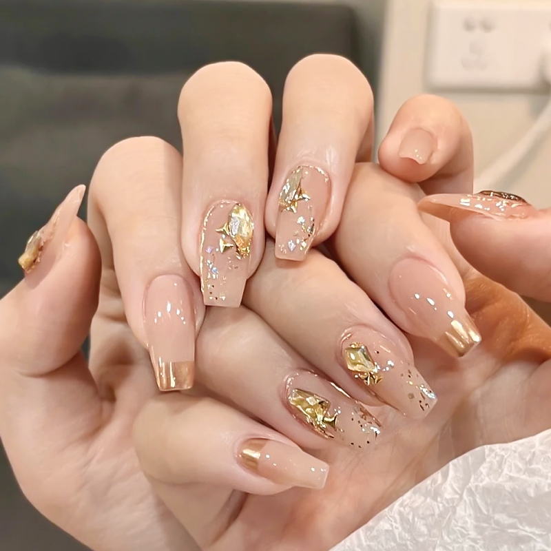 超薄无痕免刻磨短梯形指甲片贴片延长塑形穿戴甲片美甲店专用工具