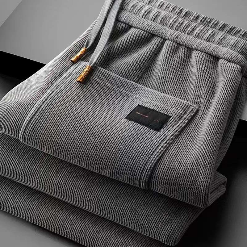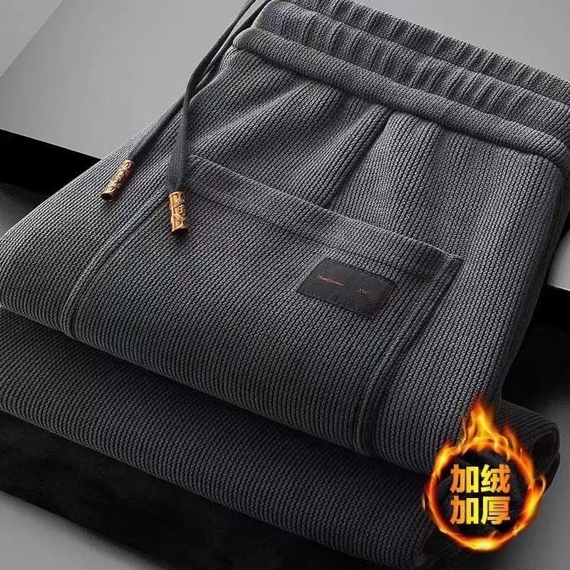高端雪尼尔男士卫裤秋冬季新款中年加绒加厚运动裤宽松直筒休闲裤