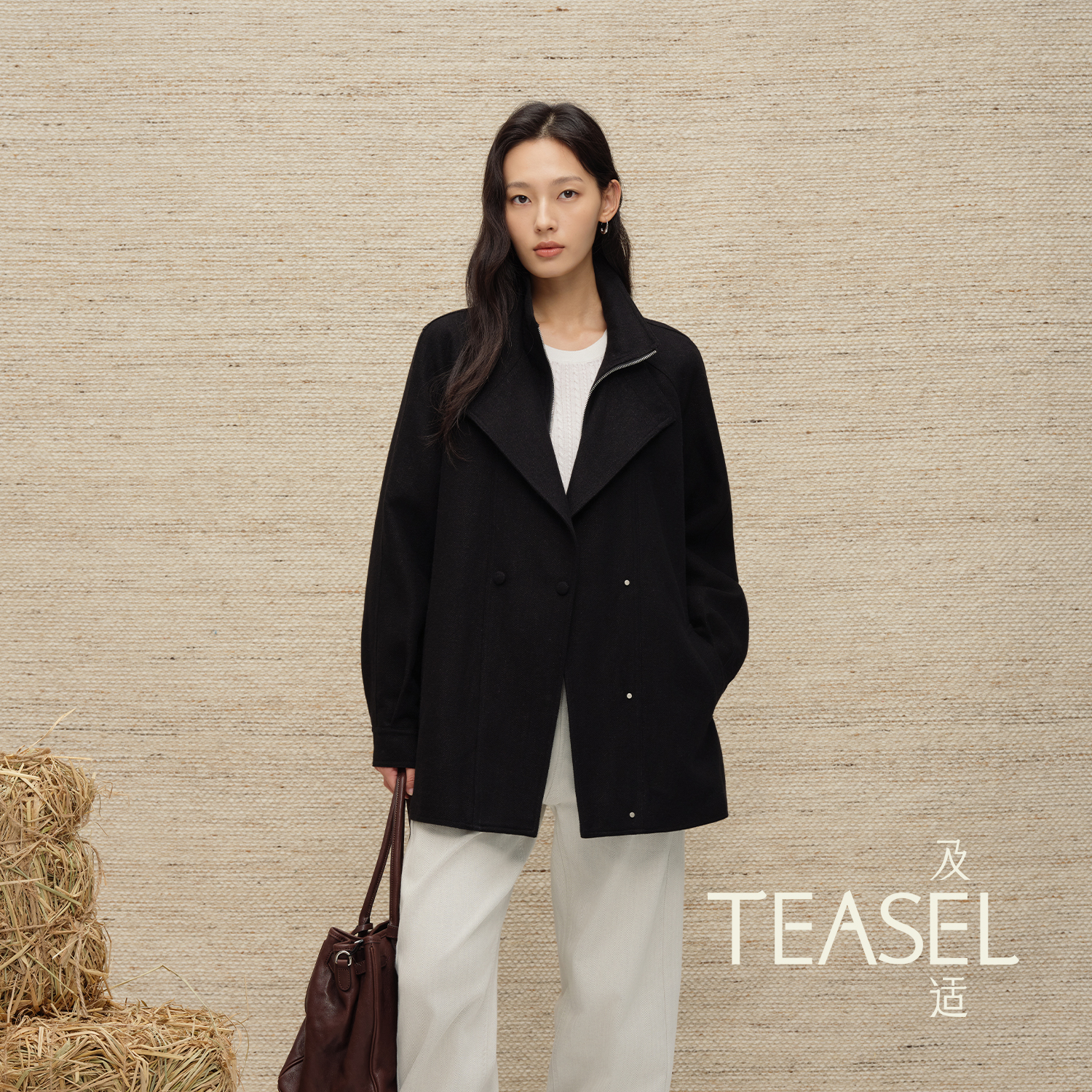 TEASEL「时髦录客」羊毛亚麻混纺老钱风立领宽松轻猎装夹克外套