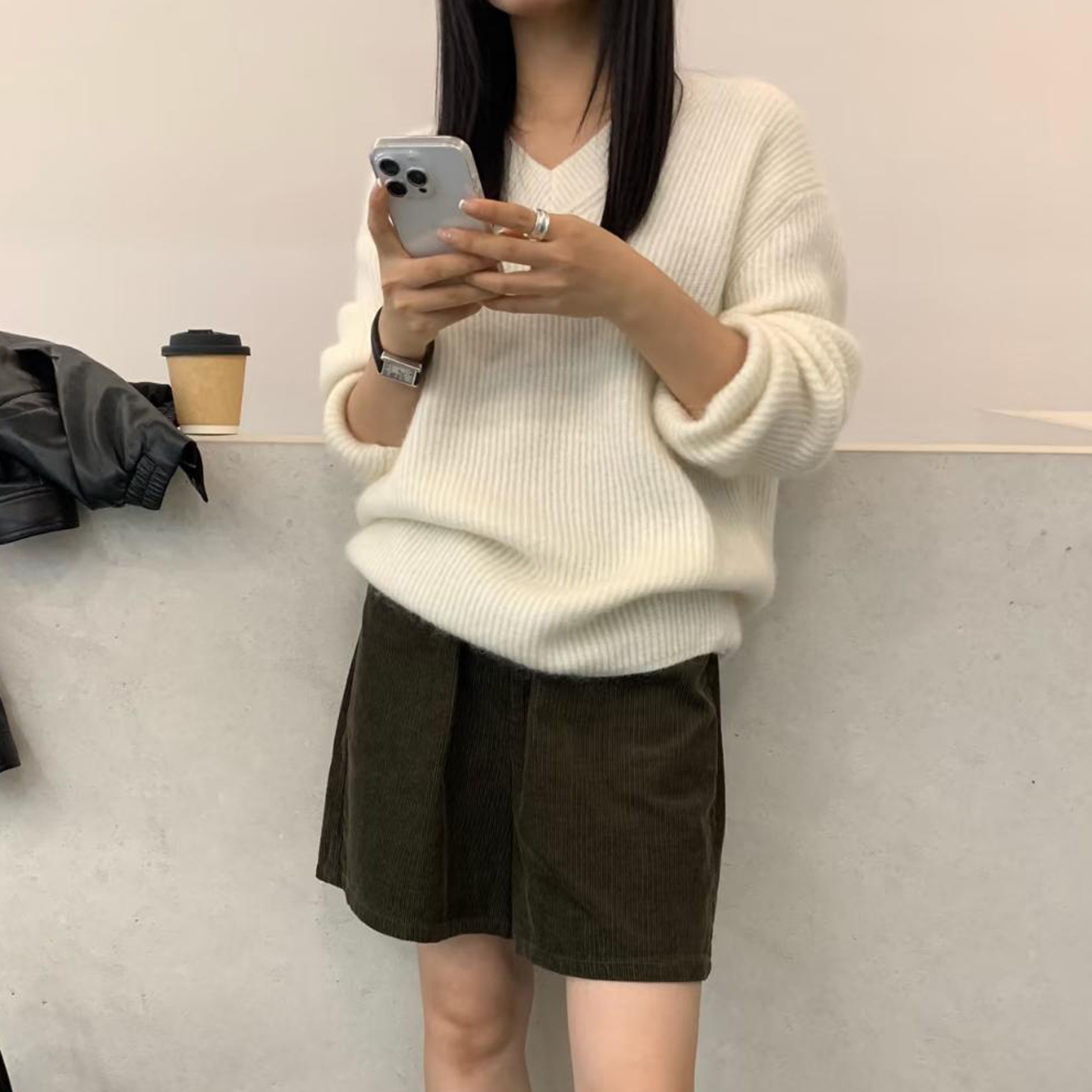 京绒羊2025秋冬V领100%纯羊毛衫女士宽松显瘦气质套头毛衣打底衫