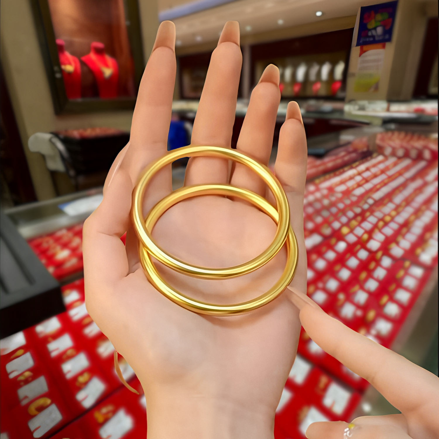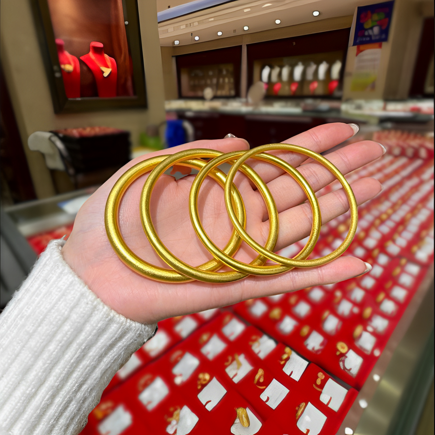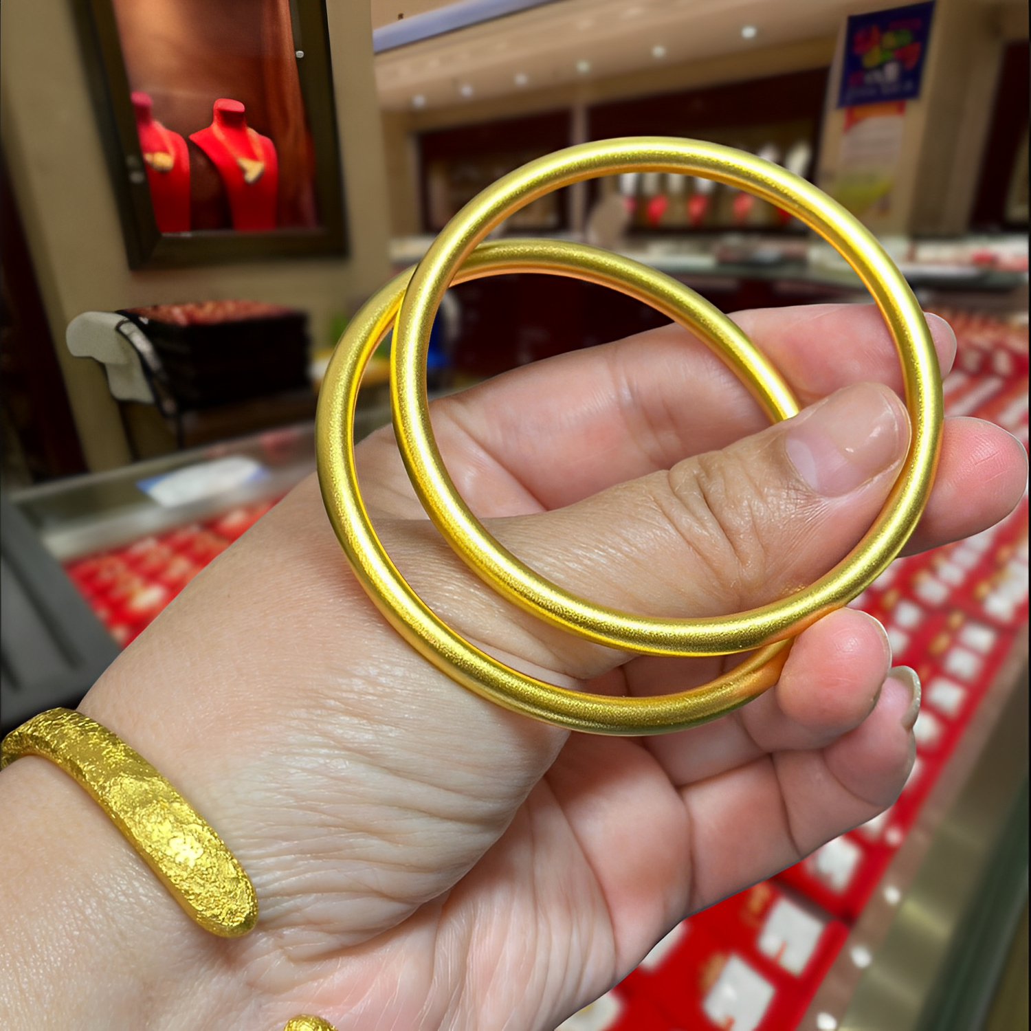 古法手工传承足金包银素圈实心闭口手镯女经典磨砂贵妃镯子送礼物