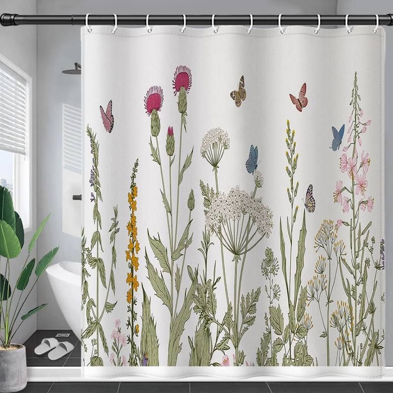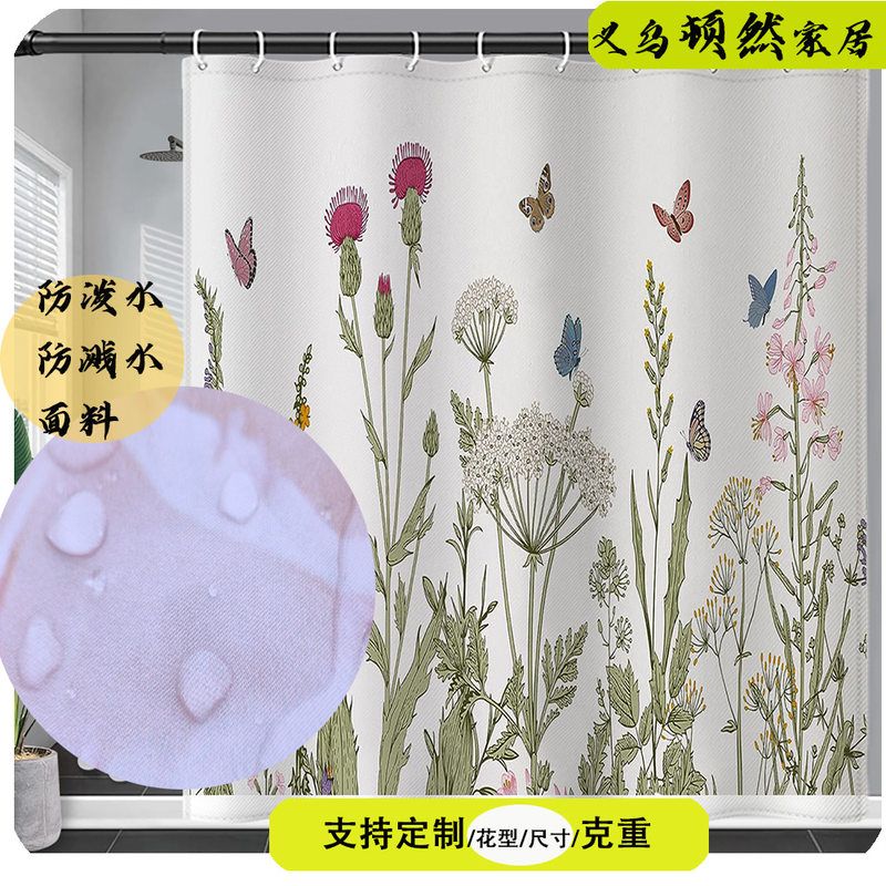 现代北欧防霉亚麻防水手绘浴帘顿然质地加厚跨境涤纶高档