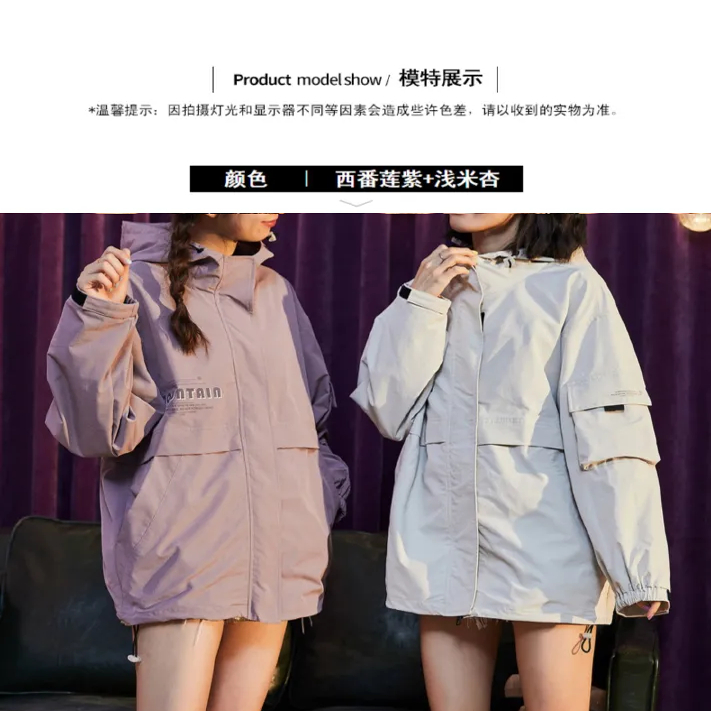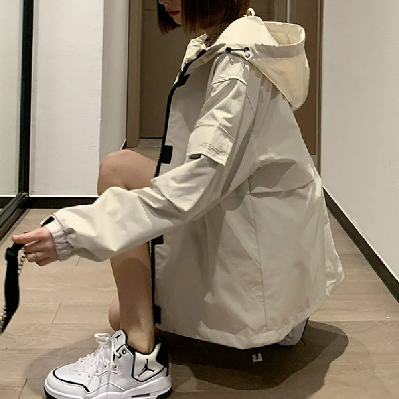 唐系列女装春季新款纯色连帽夹克外套宽松上衣风衣/1-60