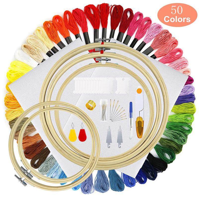 100色刺绣线套装彩色dmc涤棉线十字绣工Q具配件绣布绣圈组合