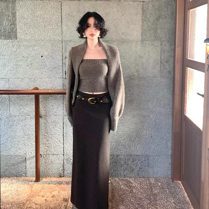 【双11】酒午自制【流光纤姿】港风复古羊毛混纺毛呢半身裙