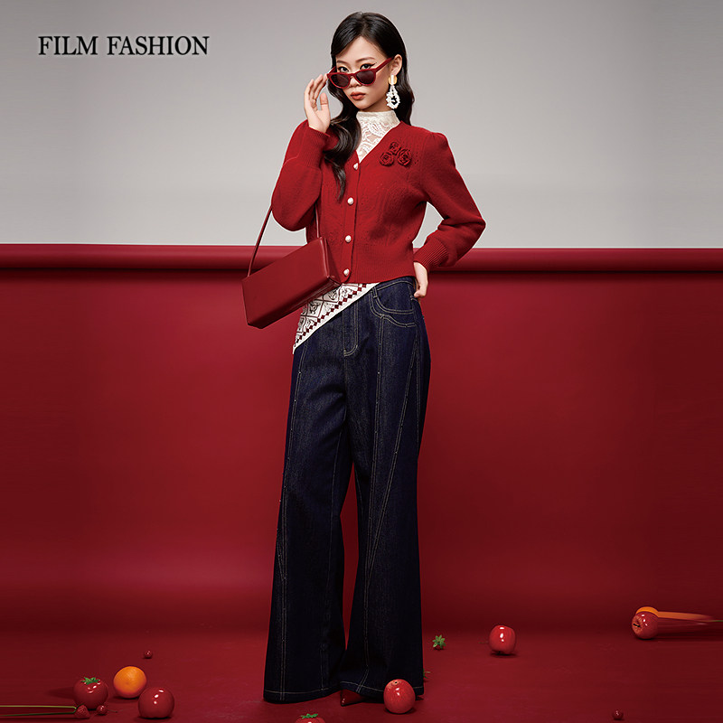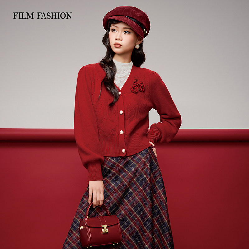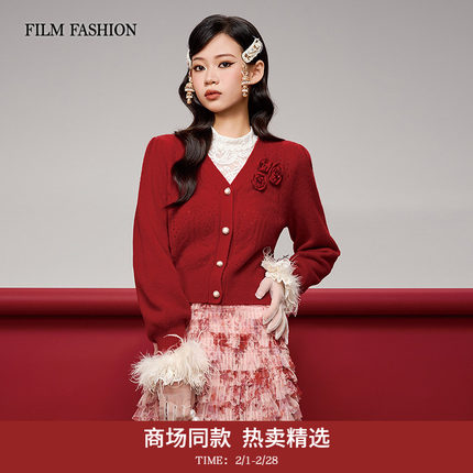 【商场同款】一电影一时装2026早春新款毛织开衫上衣V领长袖女士