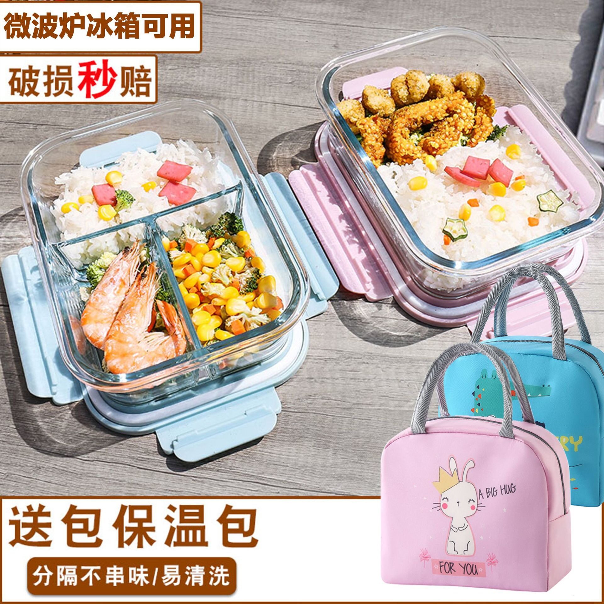 长方形高硼硅耐热玻璃保鲜饭盒套装 食品级微波炉保温密封便当盒2