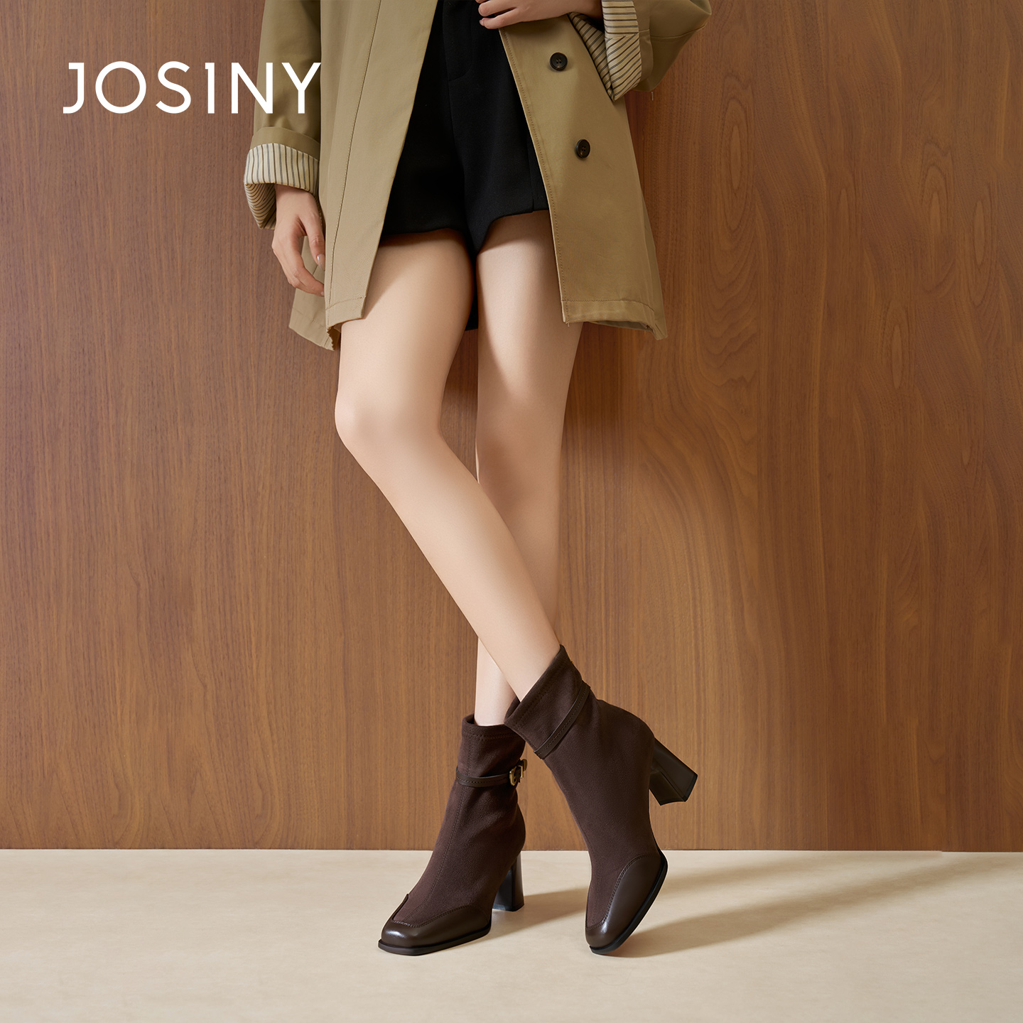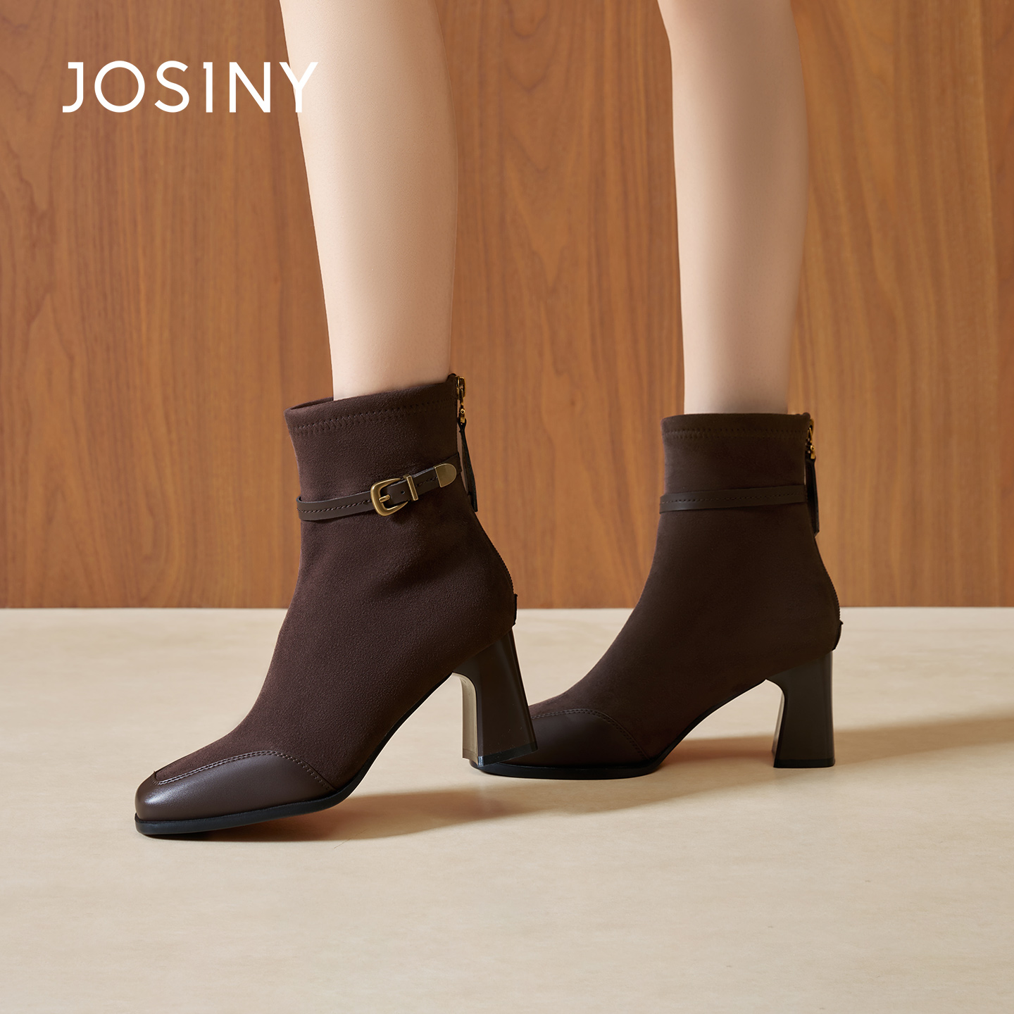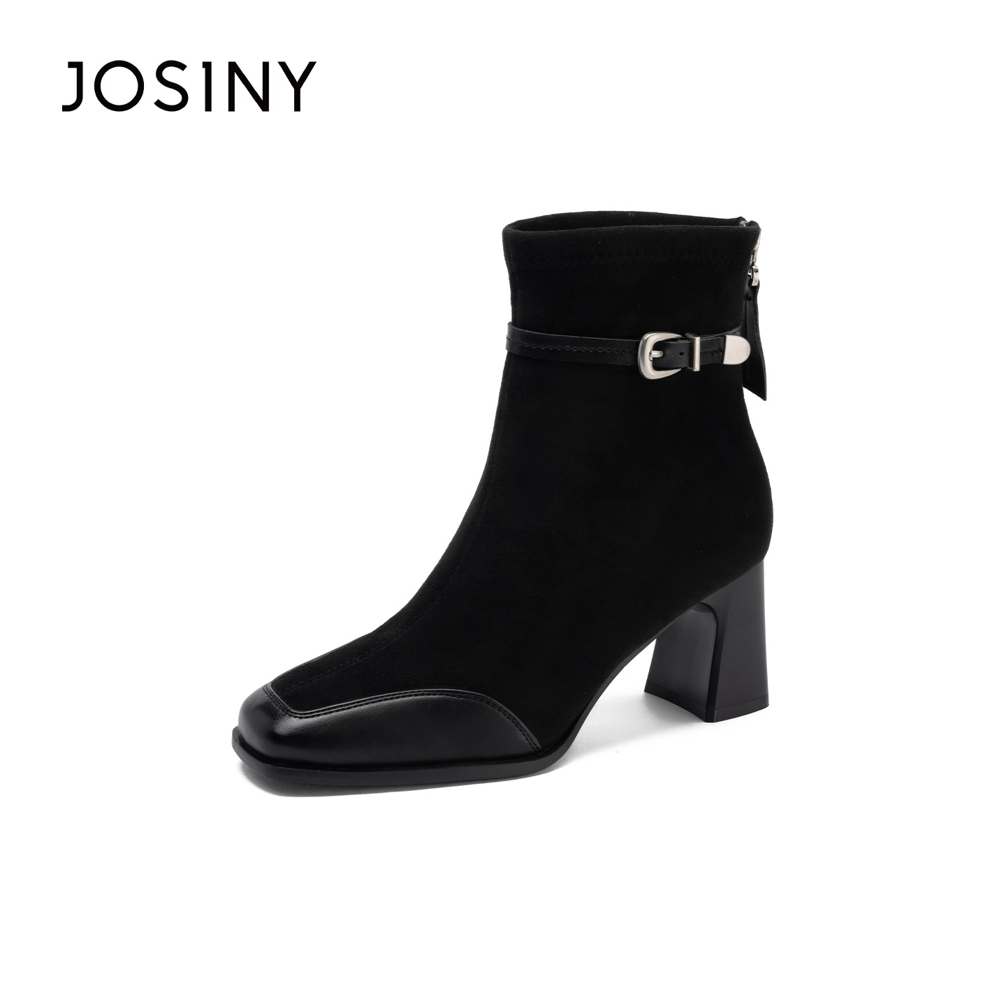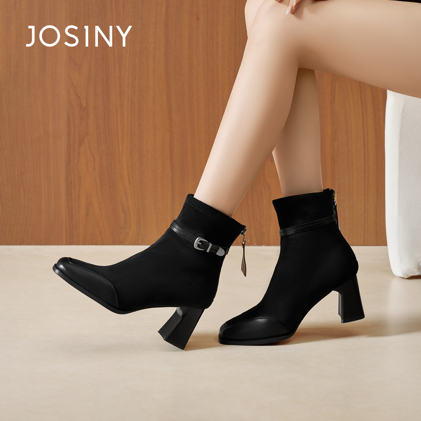 卓诗尼2025秋冬新款马丁靴后拉链短靴时尚舒适瘦瘦靴优雅时装靴女