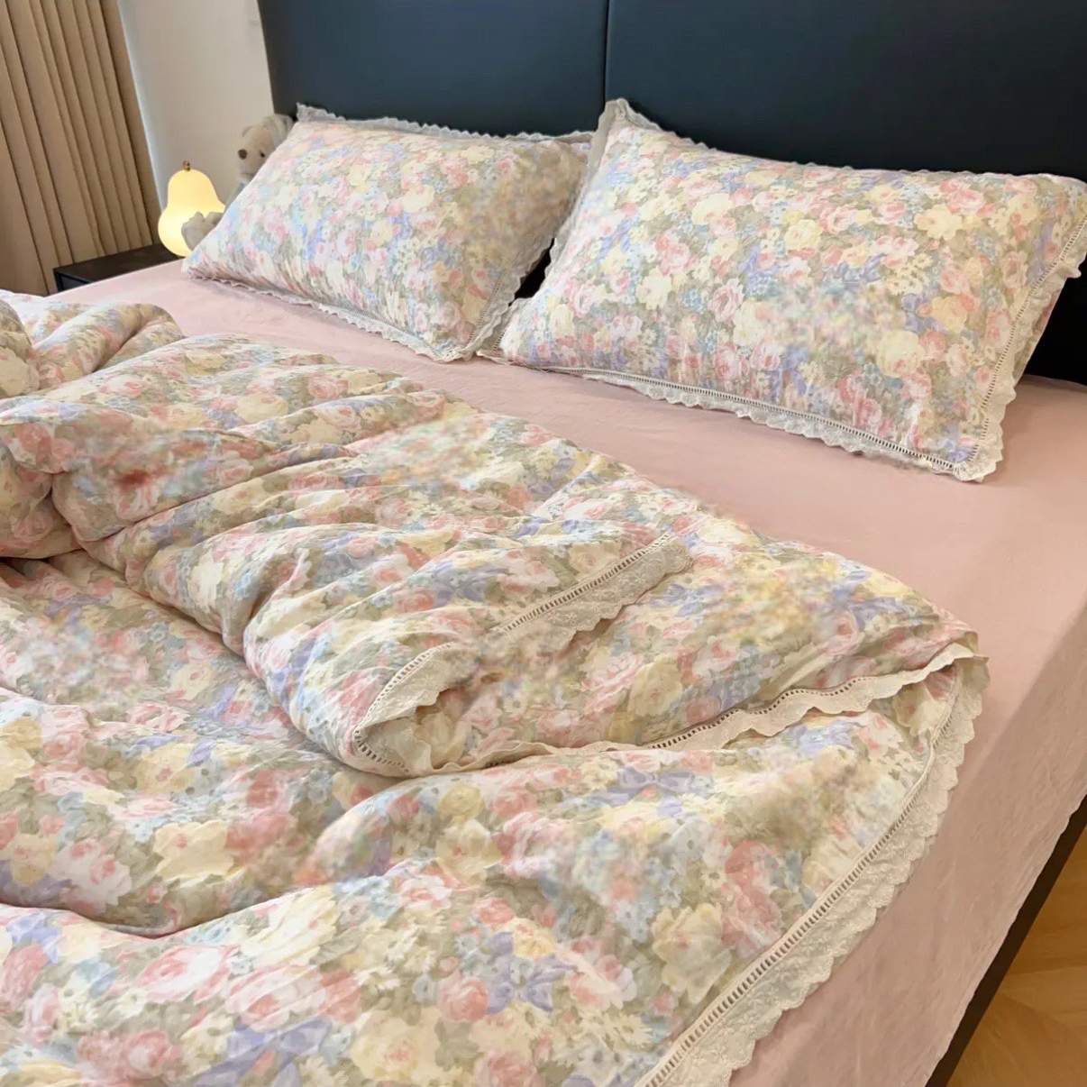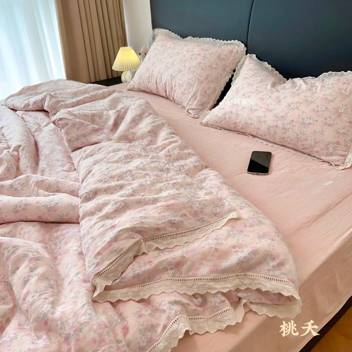 韩式花边a类母婴级全棉双层纱床上四件套纯棉纱布被套学生三件套