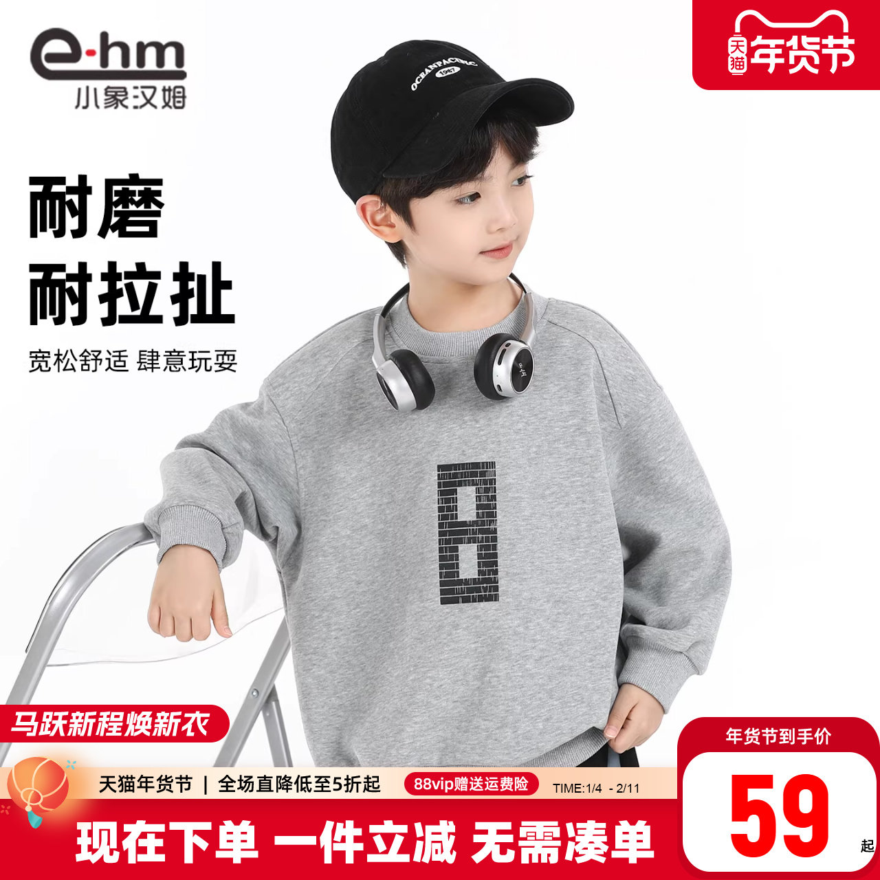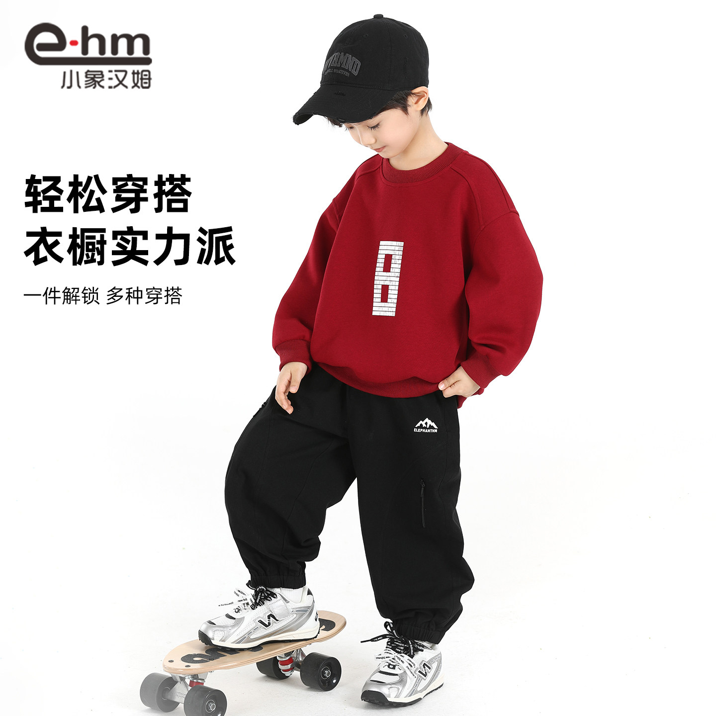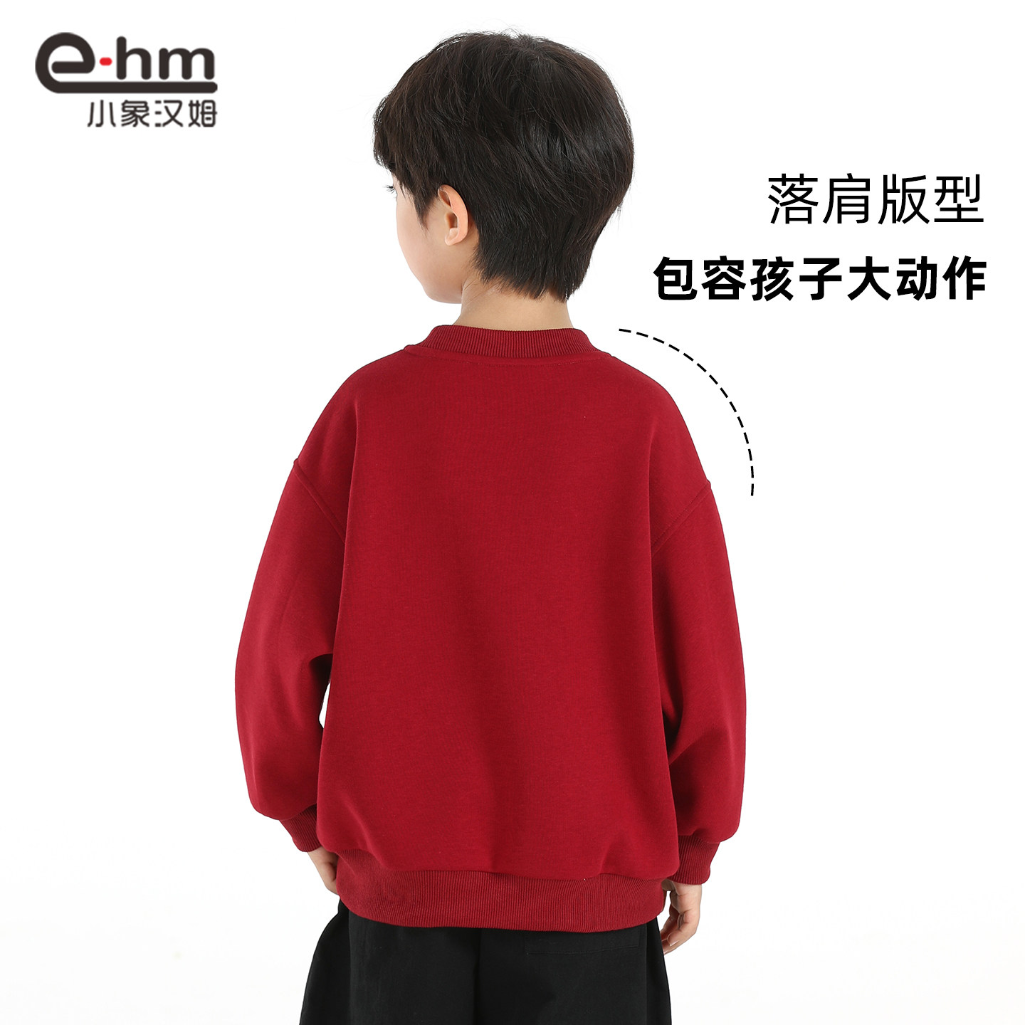 小象汉姆童装男童卫衣儿童圆领打底衫2026春装新款新年红男孩上衣