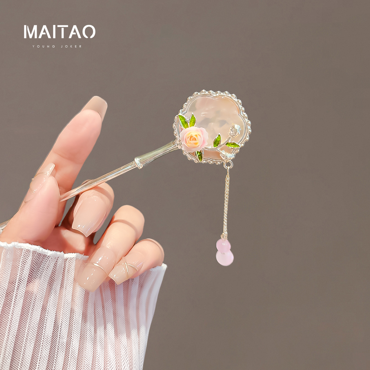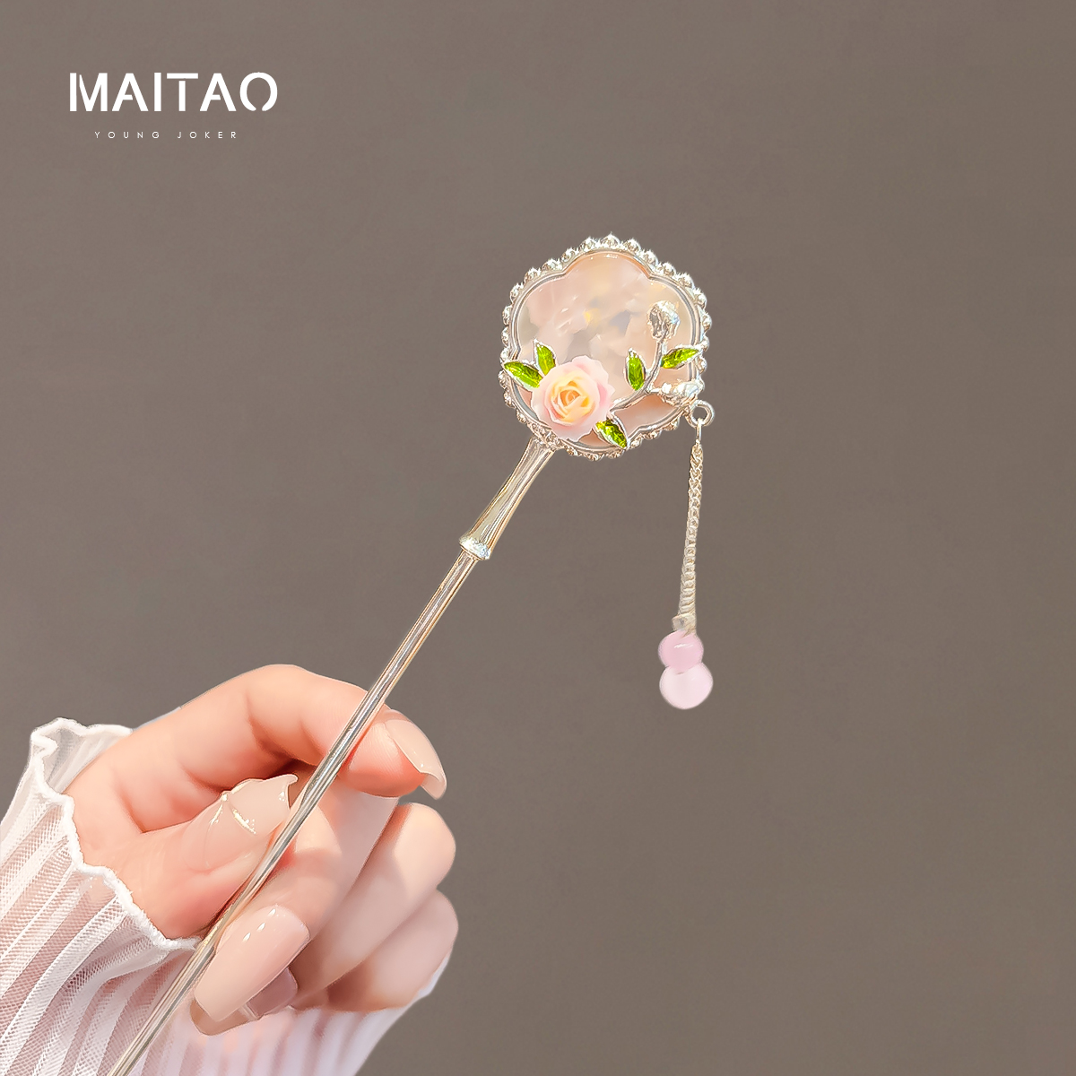 新款古风发簪子新中式玫瑰花汉服马面裙高级感步摇女簪花发钗头饰