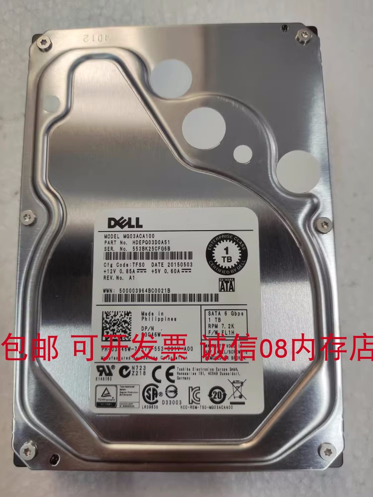 DELL R200 R210 R220 R230 R300服务器硬盘1T 1TB SATA 3.5 7.2K