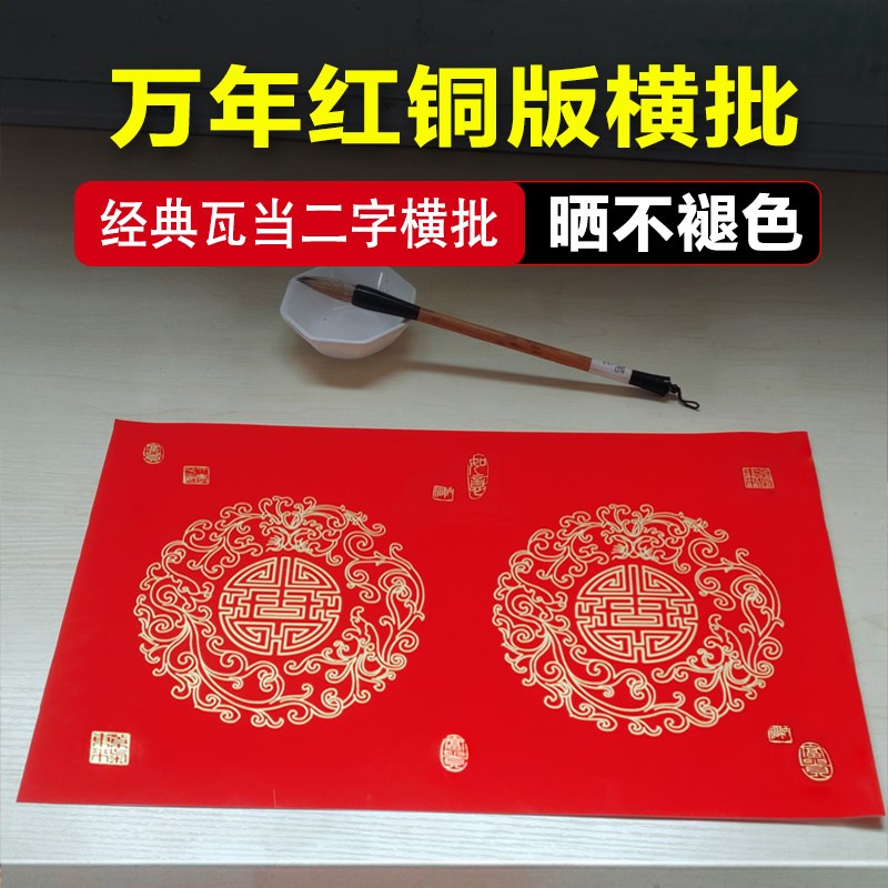 二字横批万年红铜板纸四字横批全年红承启堂对联纸手Y写春联纸加
