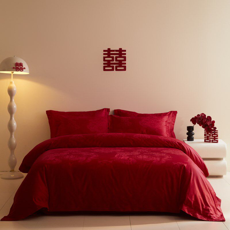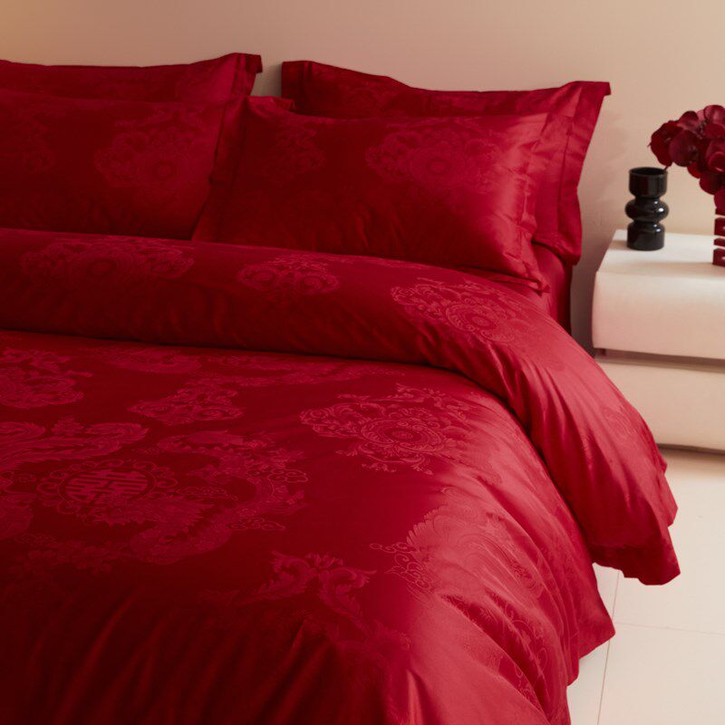 龙凤提花结婚床上四件套婚庆红色被套新婚房喜被床单床品