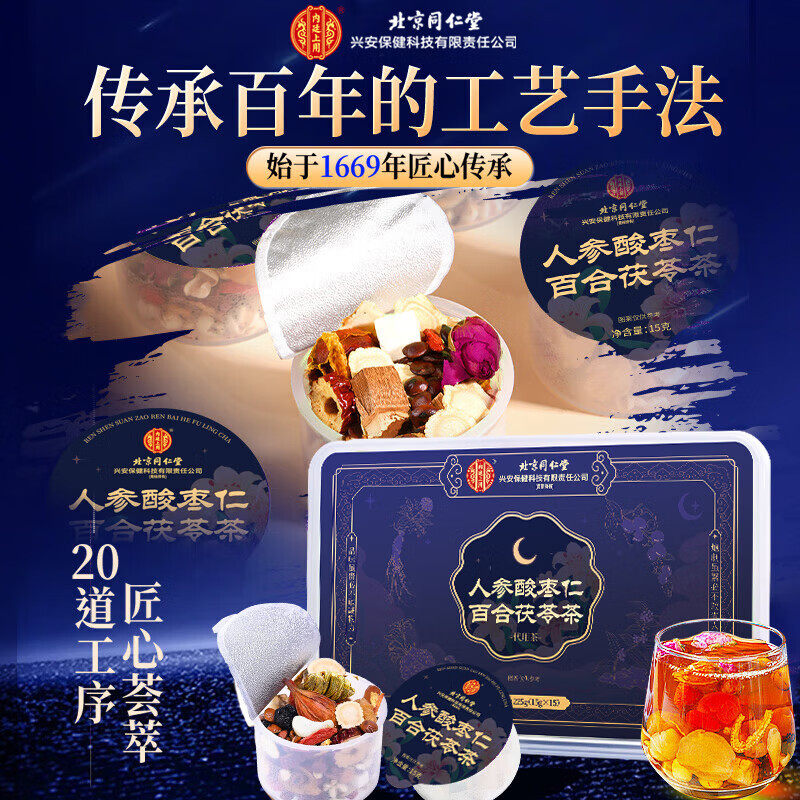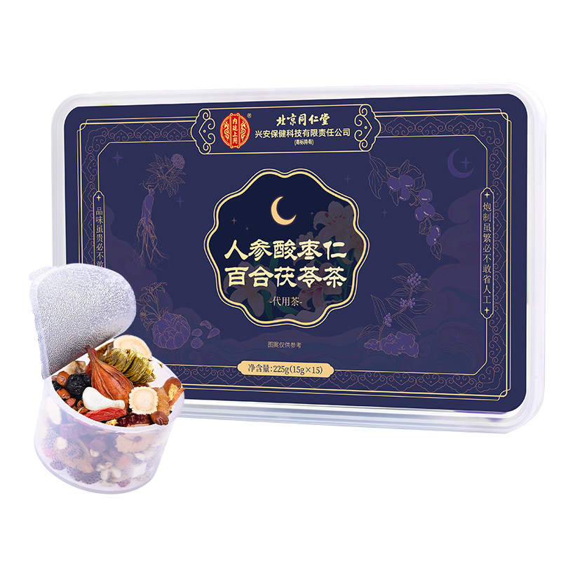 北京同仁堂酸枣仁百合茯苓茶人参茶小罐茶睡眠质量差多梦养生茶