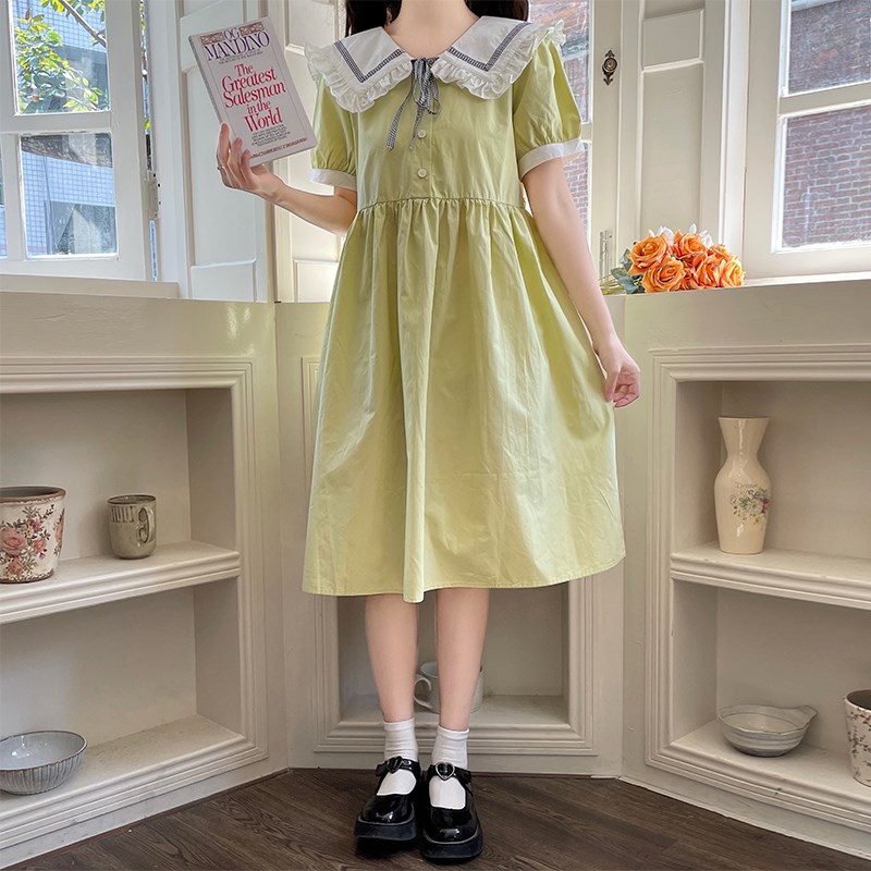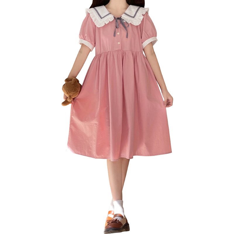 女大童夏装连衣裙12岁娃娃领甜美学生裙子13少女初中学院风14宽松
