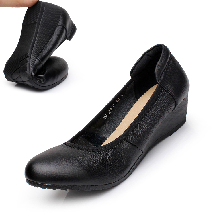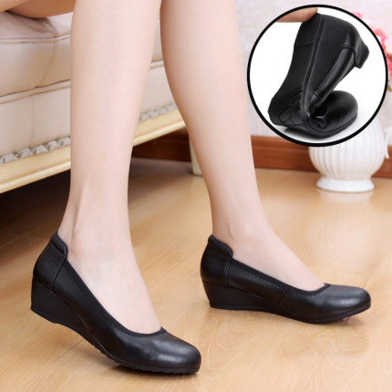 2021春秋新款平底真皮单鞋工作鞋女黑色职业鞋坡跟上班白色护士鞋