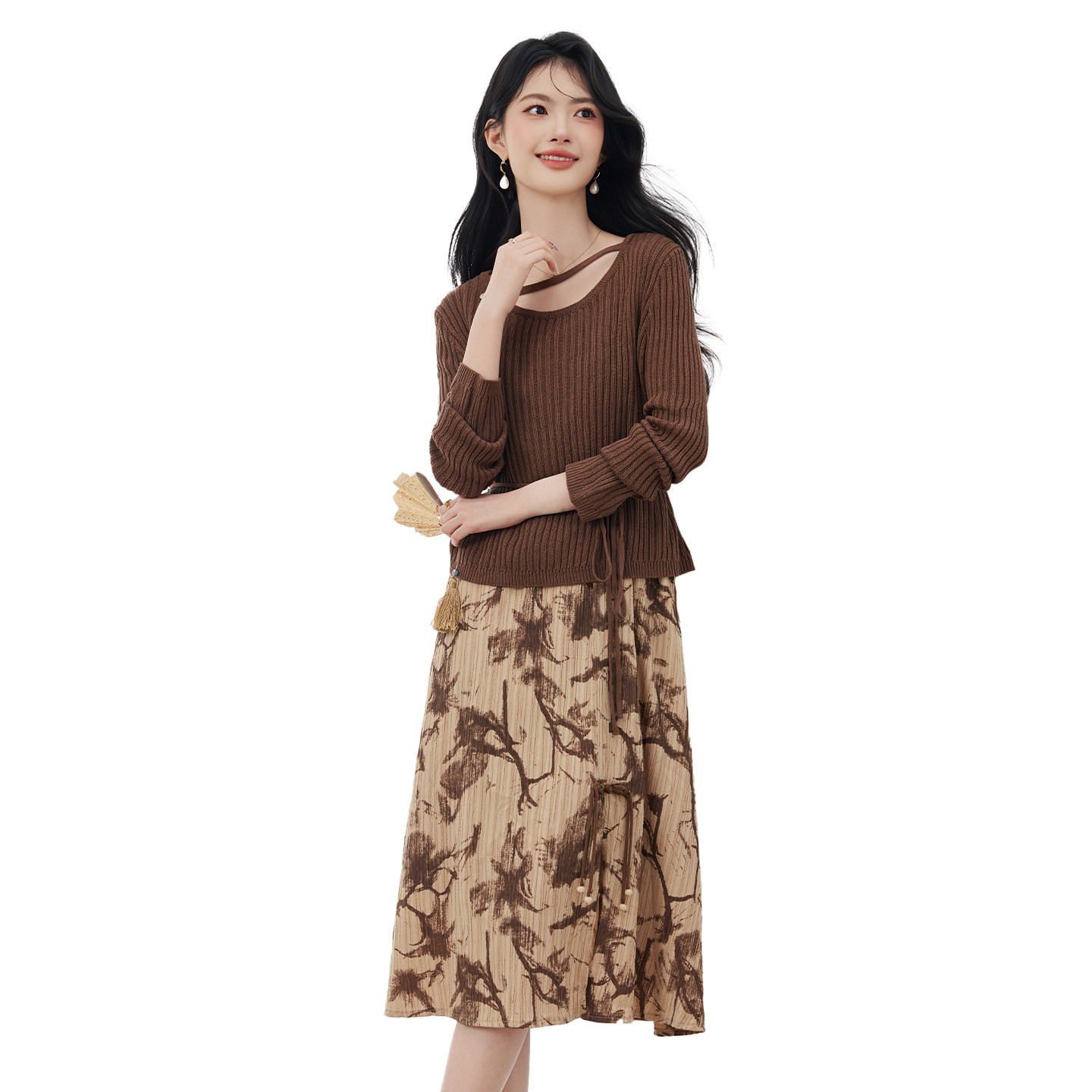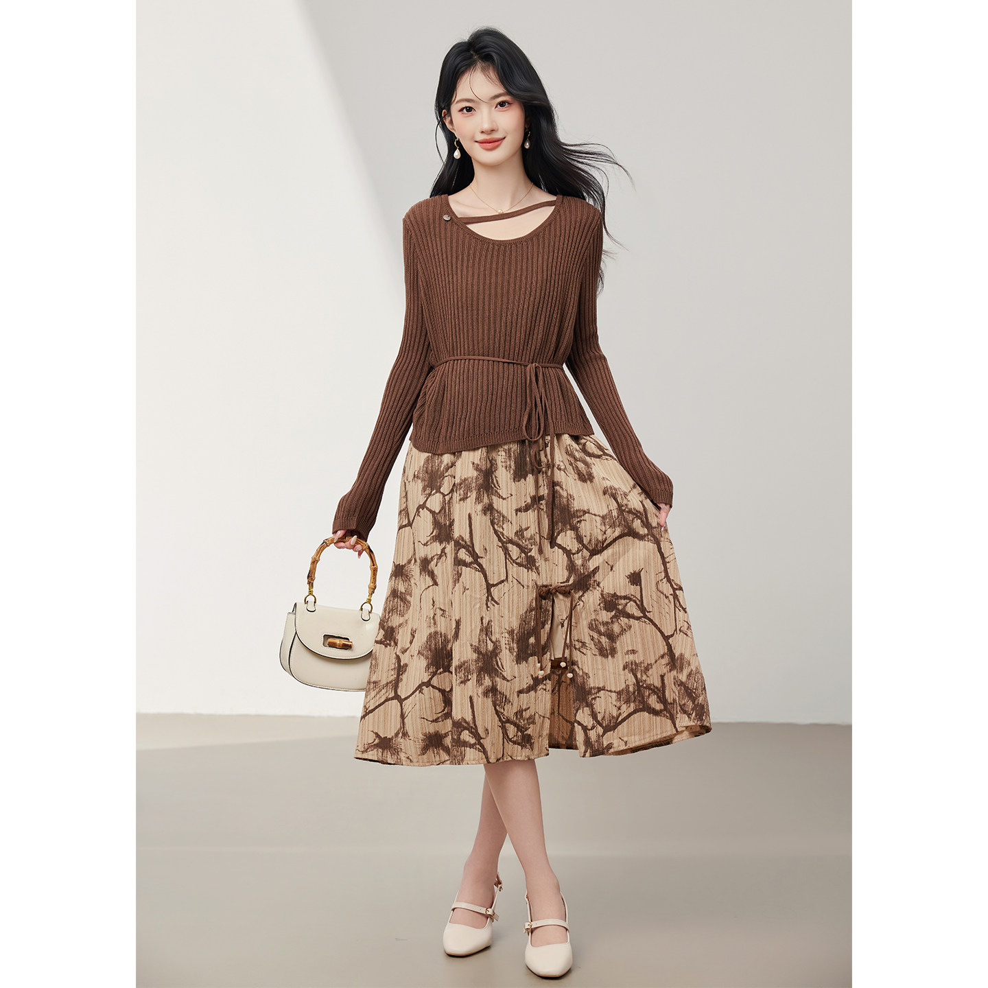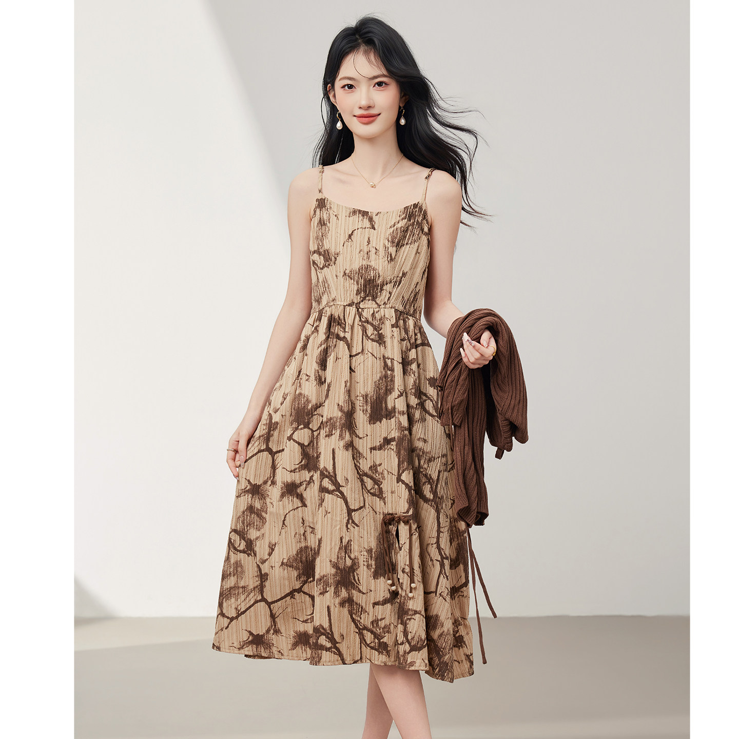 【商场同款】Smen诗萌连衣裙套装2026春针织上衣扎染吊带裙两件套