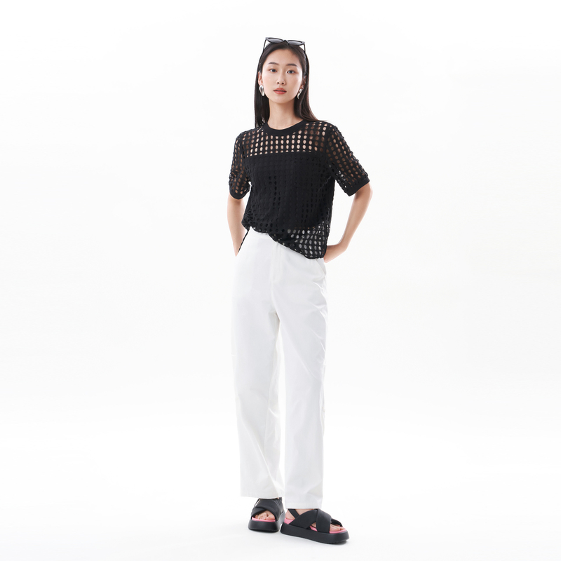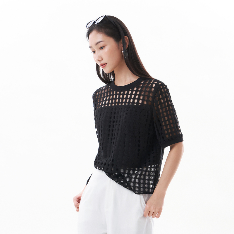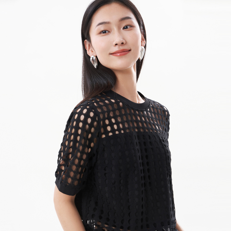 [专柜同款]Yifini/易菲圆孔蕾丝镂空罩衫女夏装新款宽松小衫