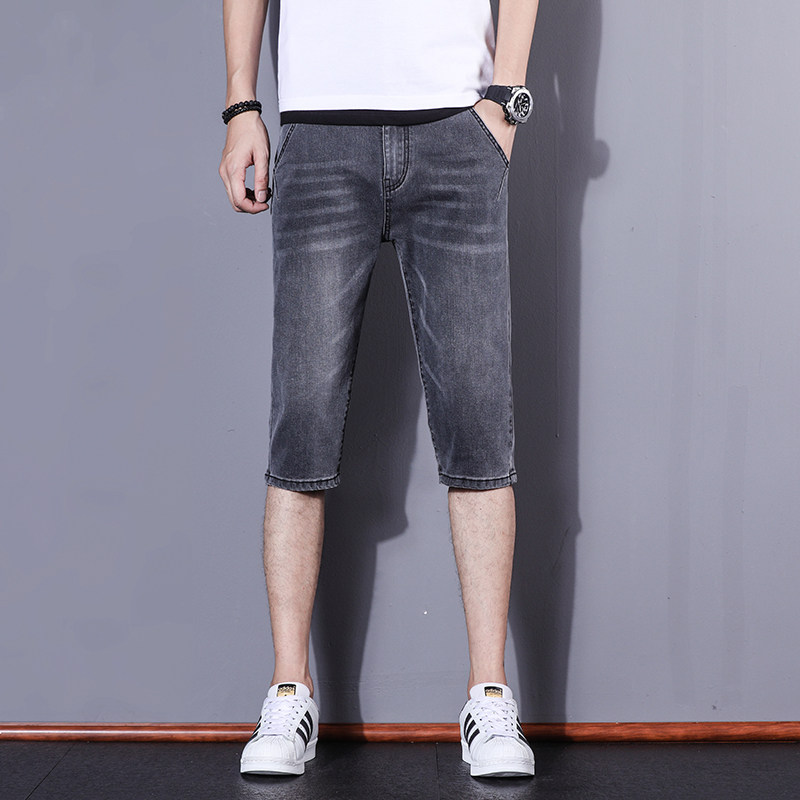 牛仔短裤男夏季薄款韩版宽松潮牌直筒透气潮流男士休闲七分中裤子