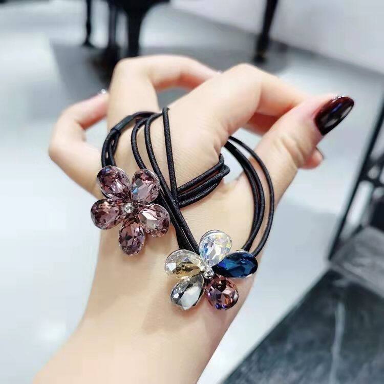 高级感精致发圈早春新款水晶花朵女网红轻奢扎头发皮筋发圈发饰
