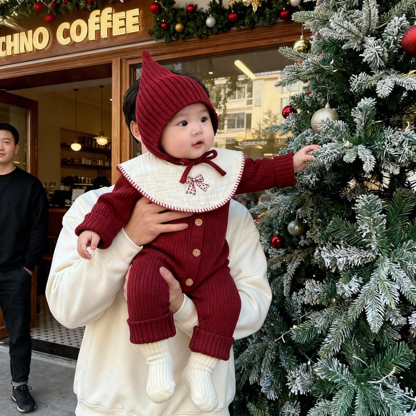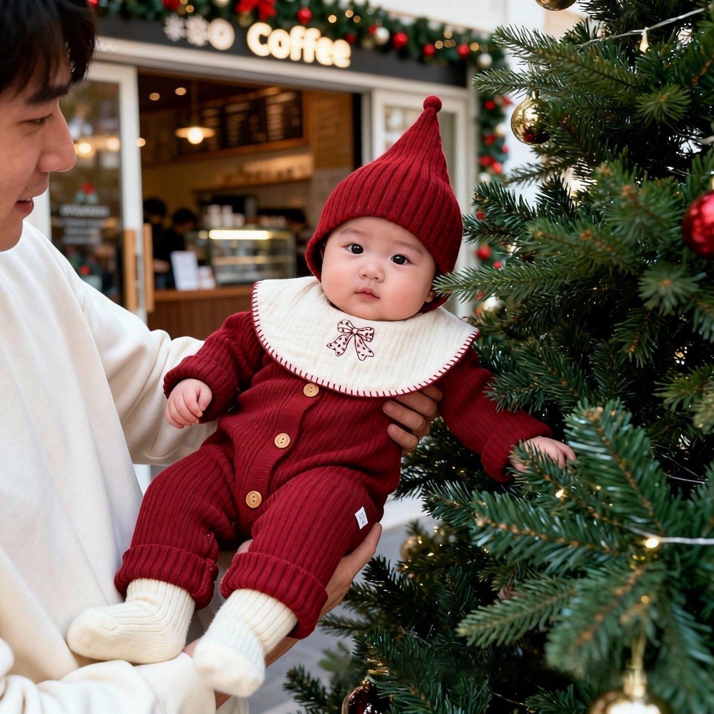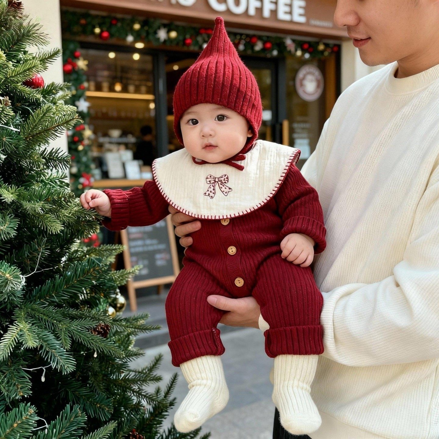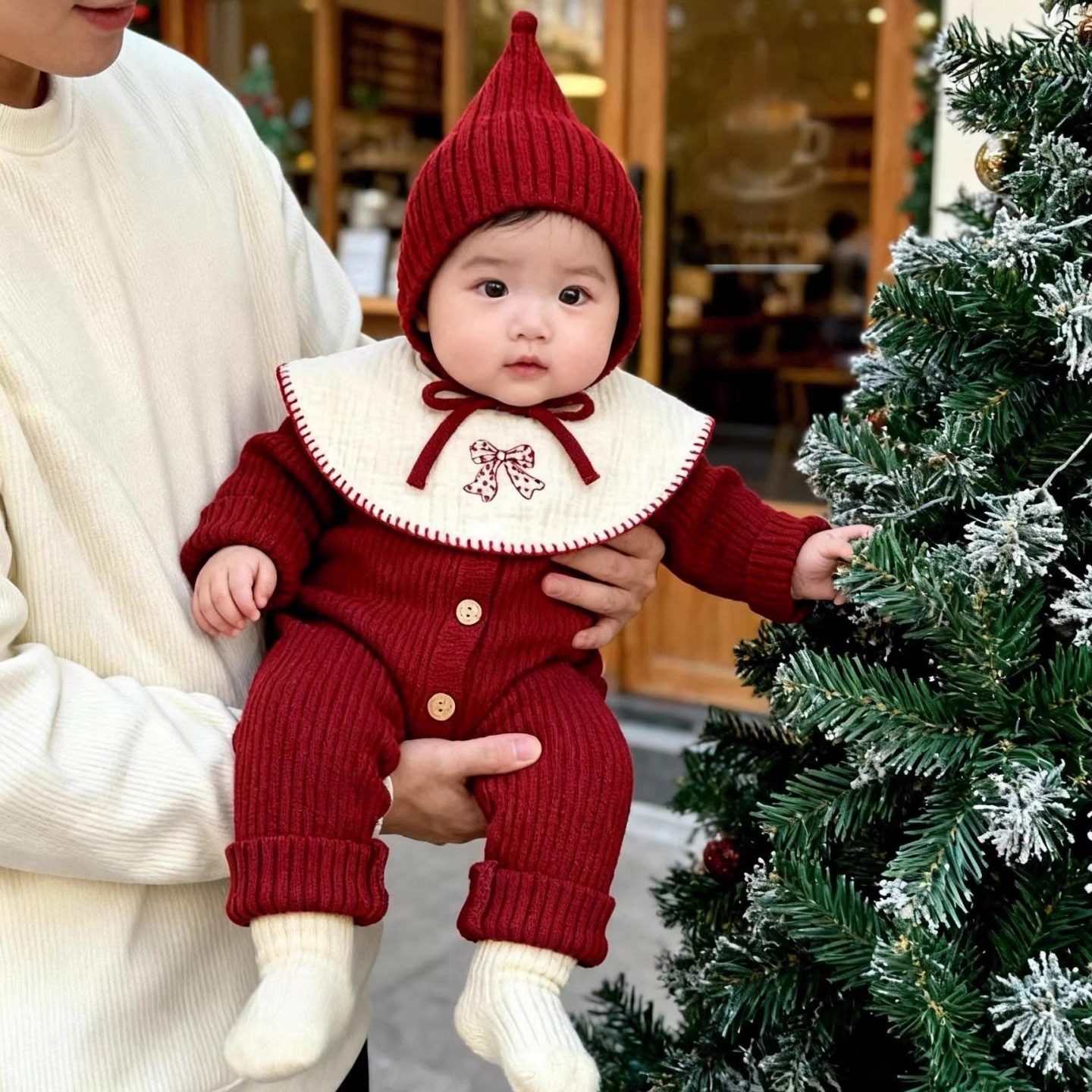 婴儿衣服秋冬新款针织连体衣宝宝红色喜庆毛衣长袖针织包屁爬爬服
