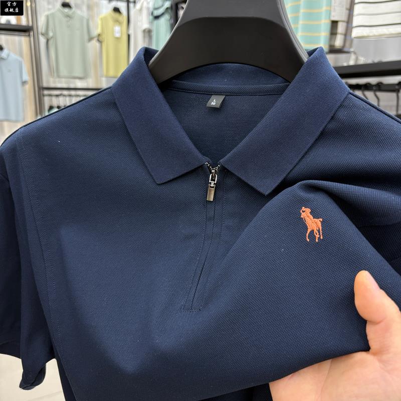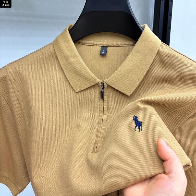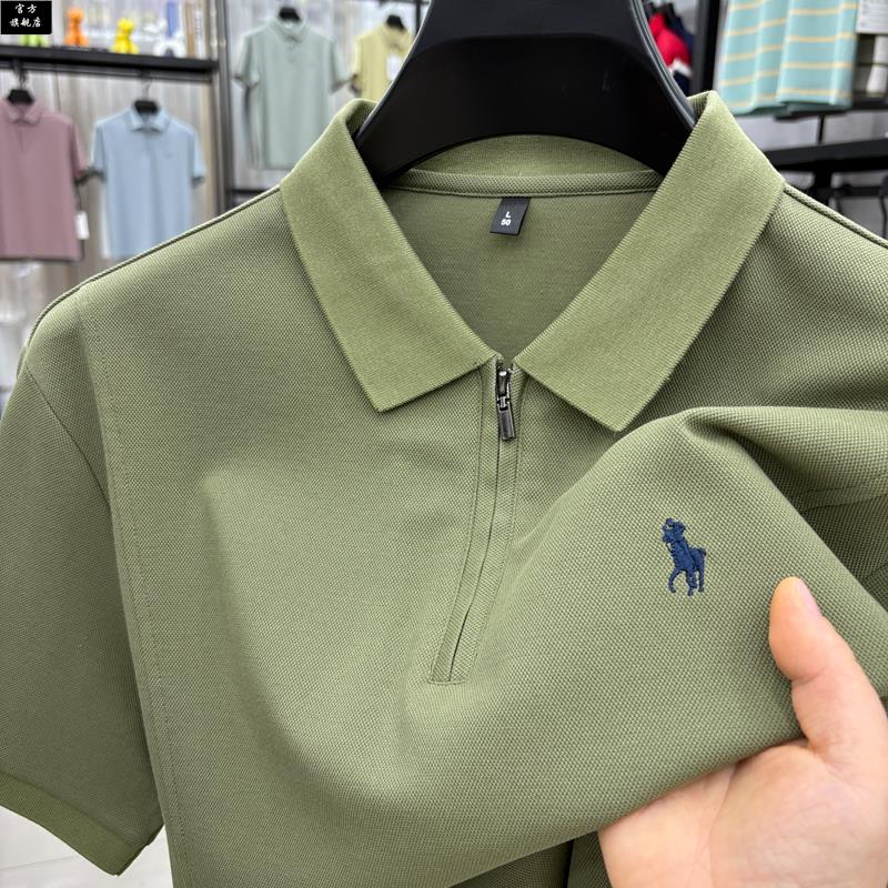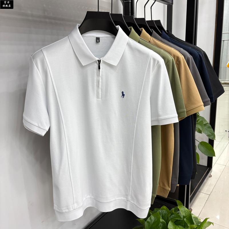 保罗官方翻领拉链POLO衫双面丝光棉高克重刺绣短袖T恤男夏装半袖