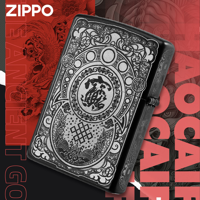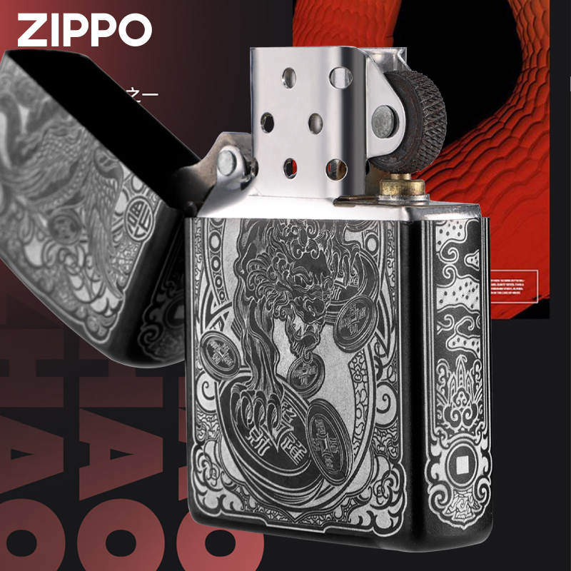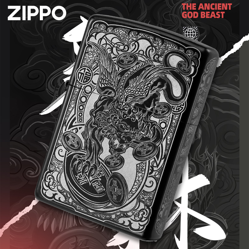 Zippo正品打火机黑耀冰招财貔貅 雕刻芝宝正版防风煤油送男友礼物