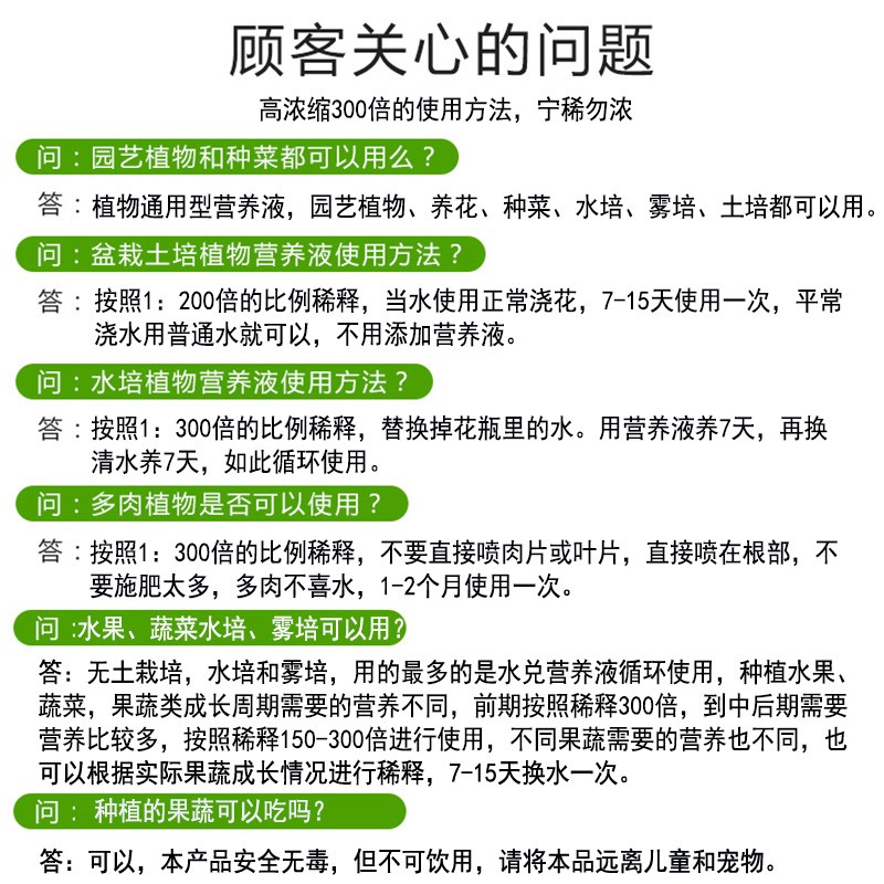 高浓缩植物营养液通用型养花种菜多肉叶面肥料水培绿萝文竹液体肥