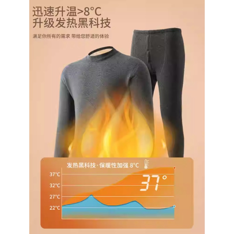 羊羔绒保暖内衣男款套装加厚加绒发热中老年男士秋衣秋裤两件套冬
