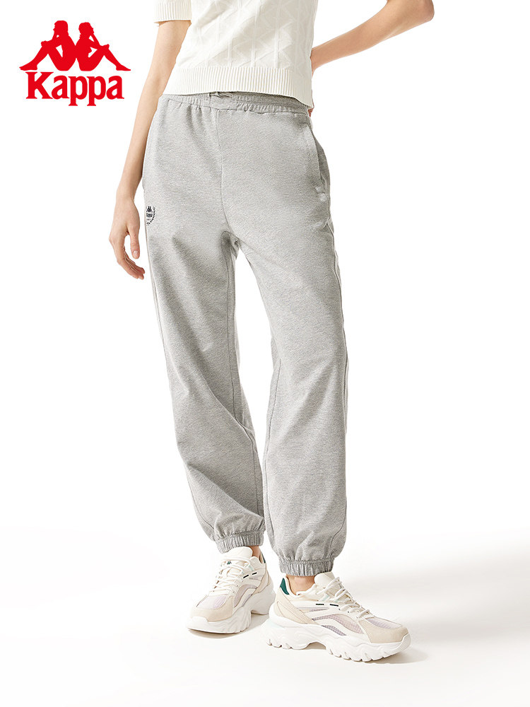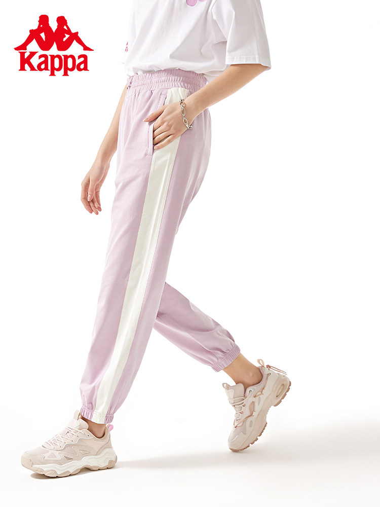 Kappa卡帕复古运动裤新款女长裤透气休闲裤白边小脚卫裤
