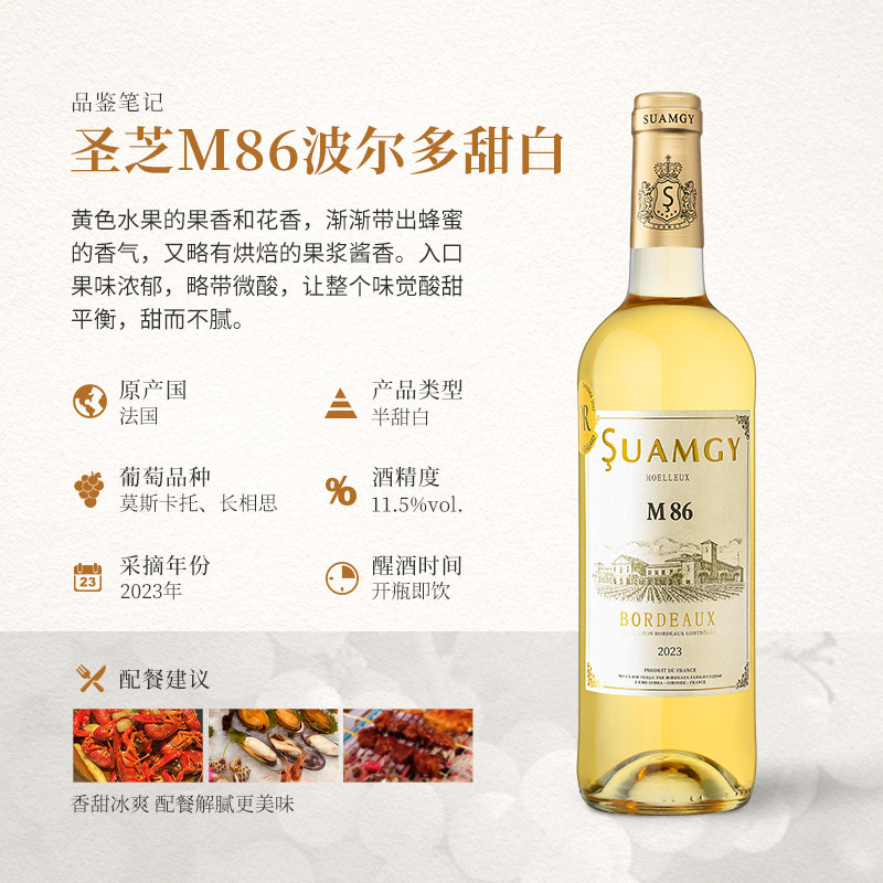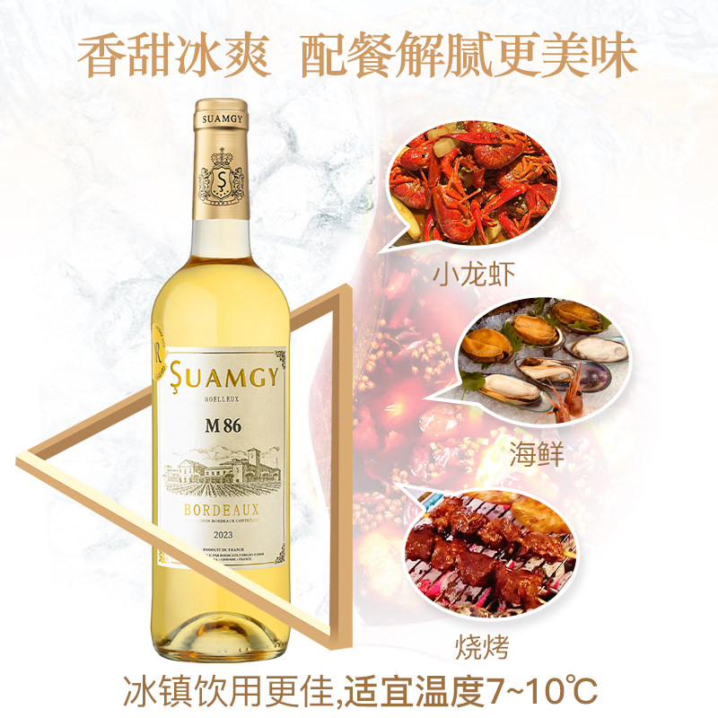 圣芝M86波尔多甜白葡萄酒山竹荔枝冰法国AOC原瓶进口半甜型单支